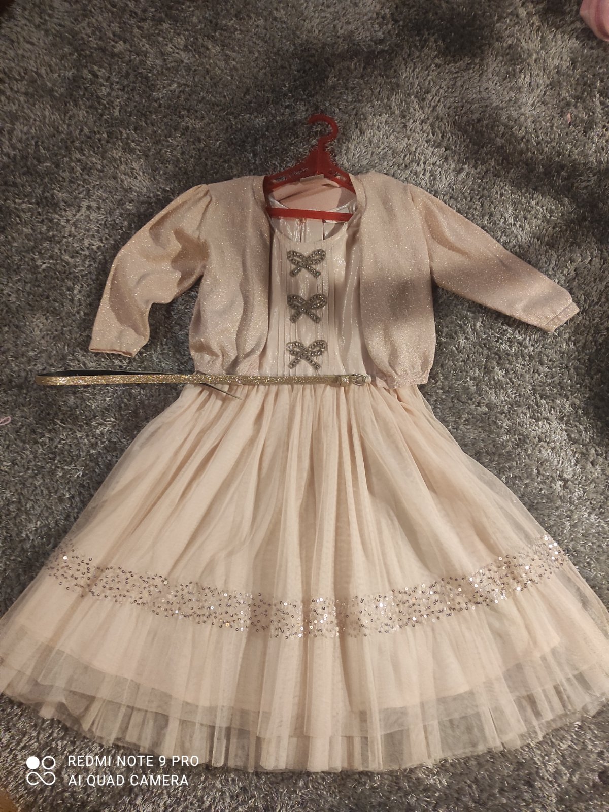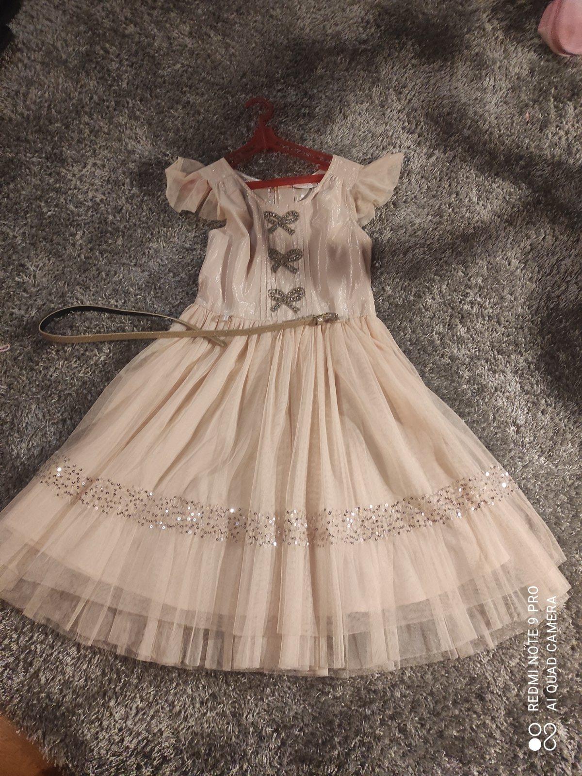 SKLADOM Nádherné sviatočné šaty Next s výraznou mašľou vpredu, dovoz UK, hodváb + tyl, odtieň veľmi svetlá ivory a biela, vhodné aj na tie najväčšie slávnosti (svadba, 1. sväté prijímanie, ...). K...