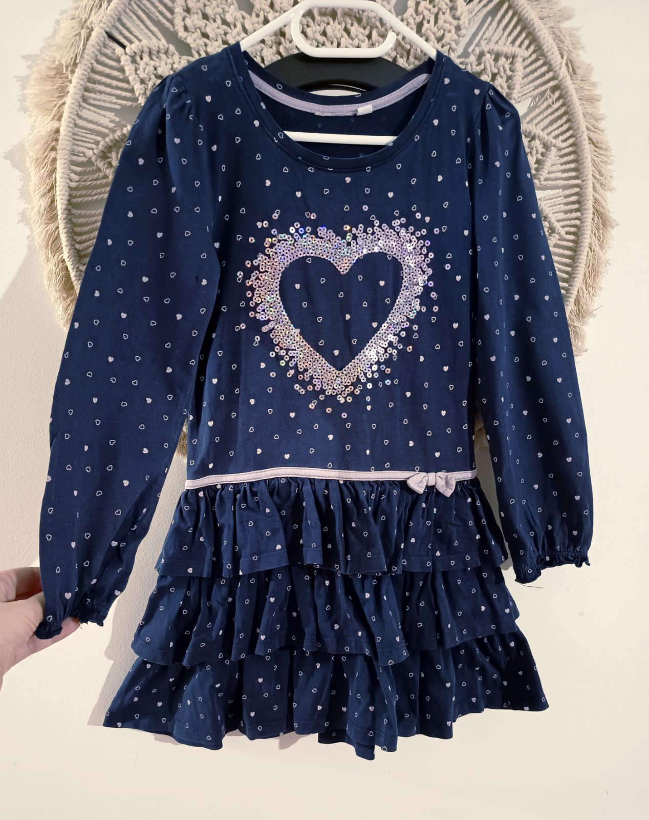 Predám mikinové šaty-tunika, príjemná tenká teplákovina, písaná veľkosť 8-9 rokov, ale sedí skôr 7 rokov. 100% stav bez známok nosenia. Dĺžka 66 cm, šírka 37,5 cm. rukáv od krku 55 cm. PC 12,99€.