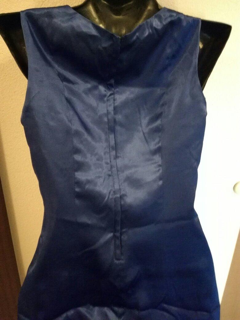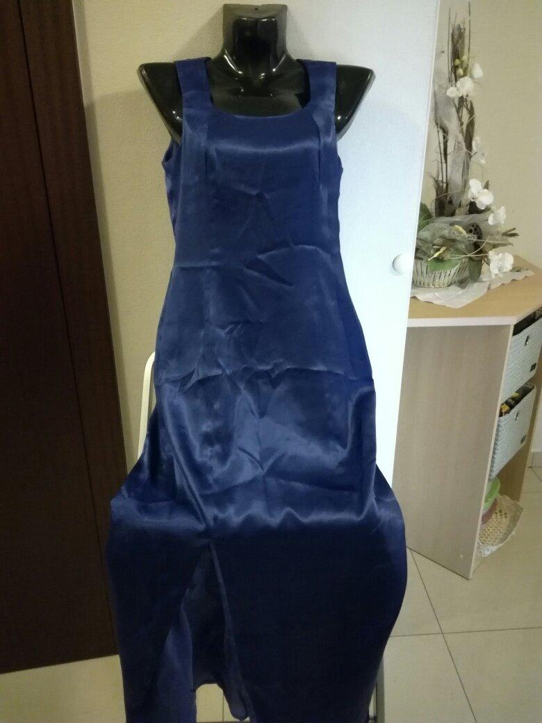 Spoločenské dlhé šaty klasického puzdrového strihu, na ples, stužkovú, alebo akúkoľvek spoločenskú udalosť, kde sa nosia dlhé šaty, vpredu na stehne je rozparok, zapínanie vzadu na zips, boli šité na mieru, sú s podšívkou. Materiál je ako satén, farba kráľovská modrá (ako na prvej a poslednej foto), krásna, sú bez poškodení, keď sa dajú k nim doplnky pôsobia perfektne, boli asi 2 x oblečené iba. Rozmery: cez prsia: cca 44-45cm, pás 36 cm, boky cca 46,5cm, dĺžka od pleca po spodok cca 130 cm. (Treba ich len prežehliť na slabom stupni cez šatku.), V prípade záujmu pridám za symbolickú sumu 6€ aj ladiacu súpravu (náhrdelník+ náušnice)