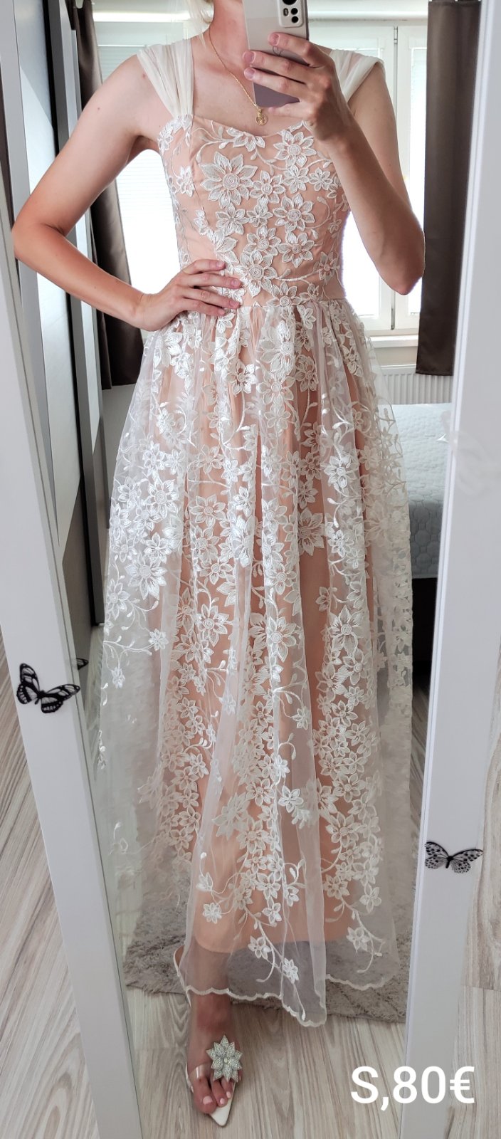 Krásne spoločenské šaty, čipkované, veľkosť S, cena 80€.
