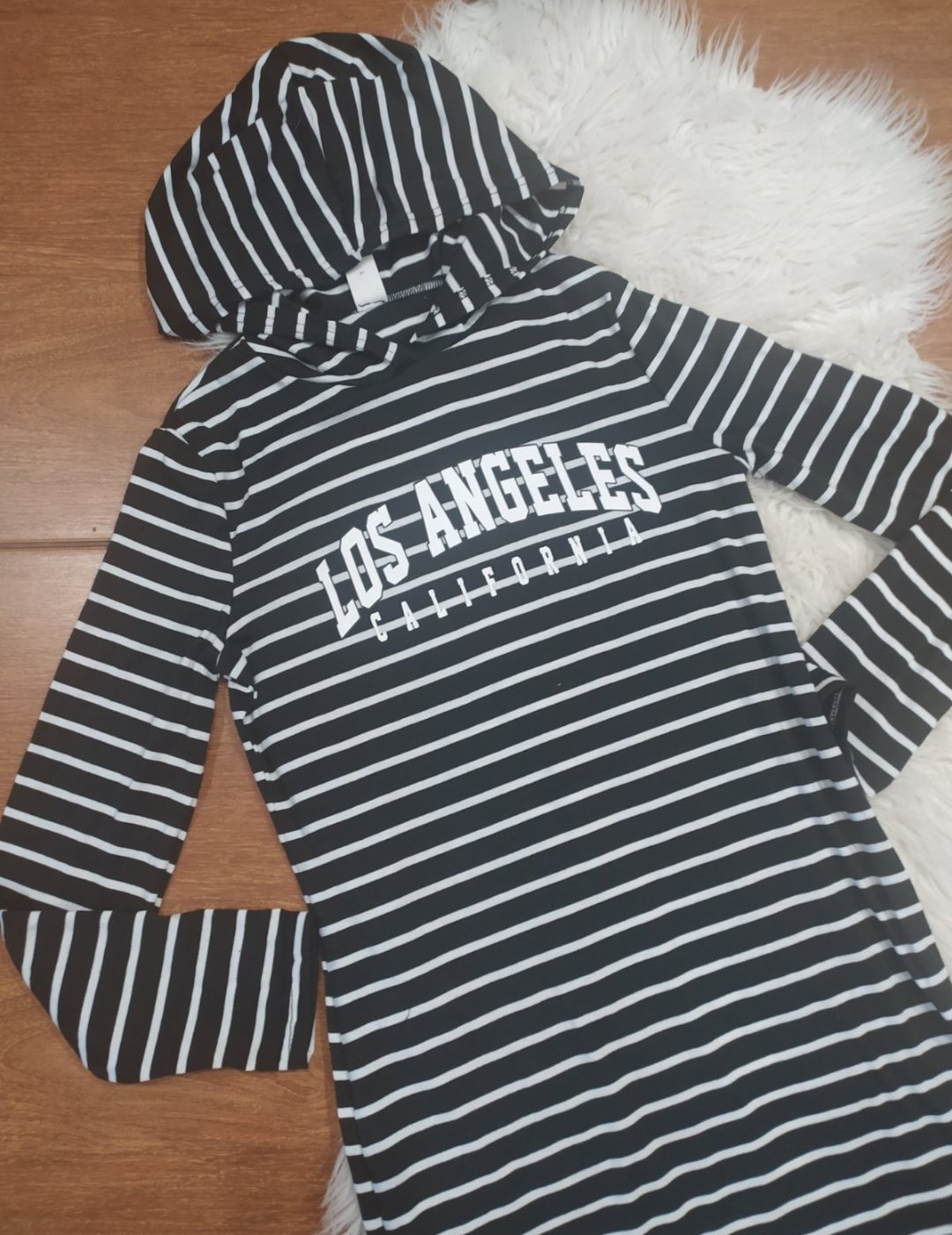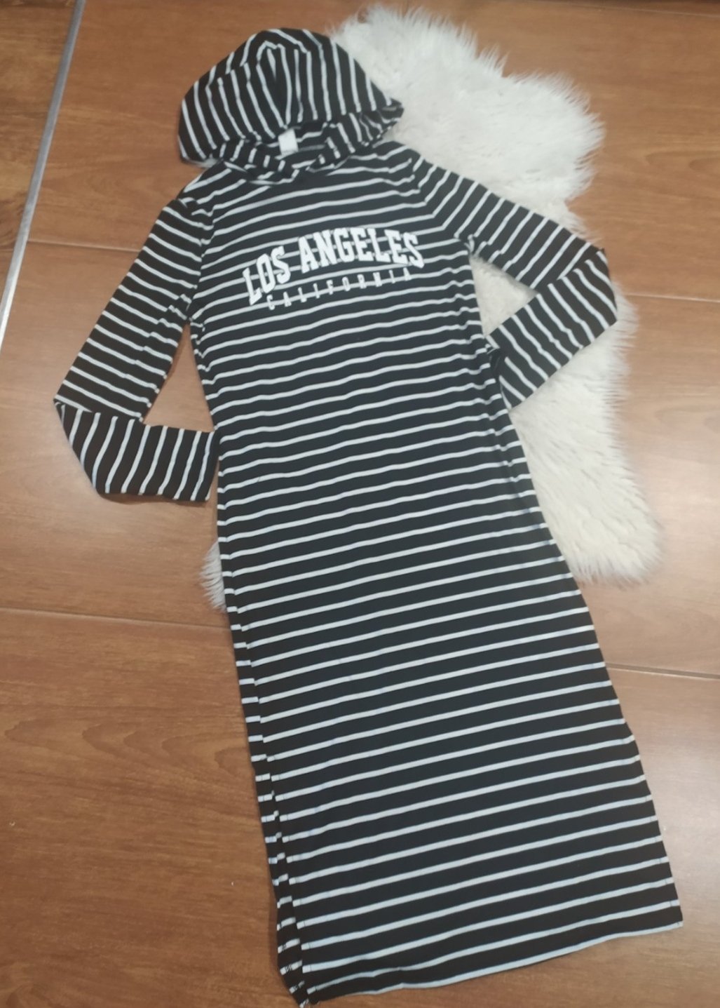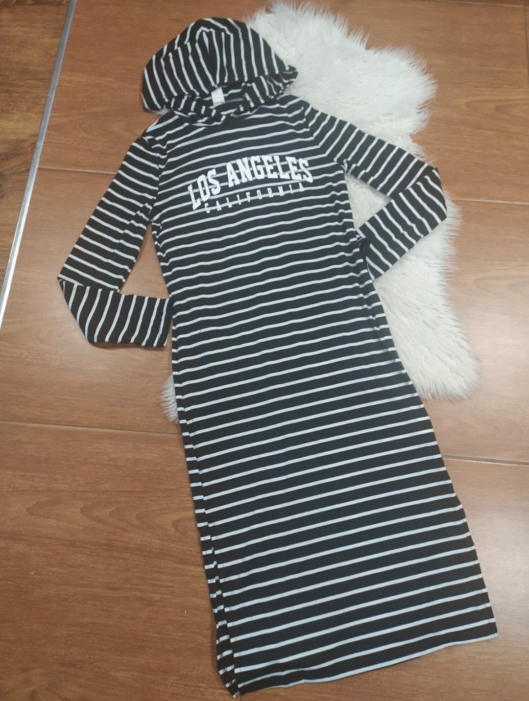 Krásne pasikove šaty s kapucňou ,dĺžka maxi,veľ 146/152