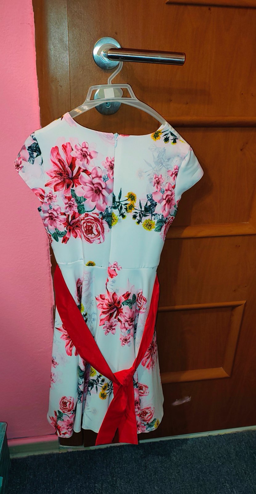 Predám nové spoločenské šaty veľ 134 za 10€.Na dobierku neposielam, buď osobný odber Košice alebo packetou vopred peniaze na účet. V cene nie je zahrnuté poštovné.Cez prsia CM(obvod x 2) je 35, šírka v páse CM (obvod x 2 ) je 33 CM, výška od ramien po spodok je 71 CM.