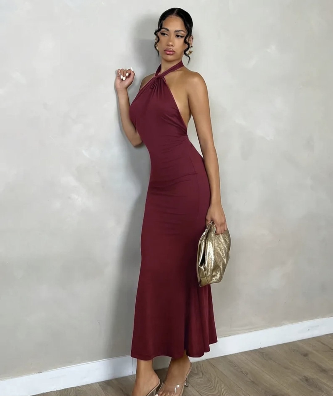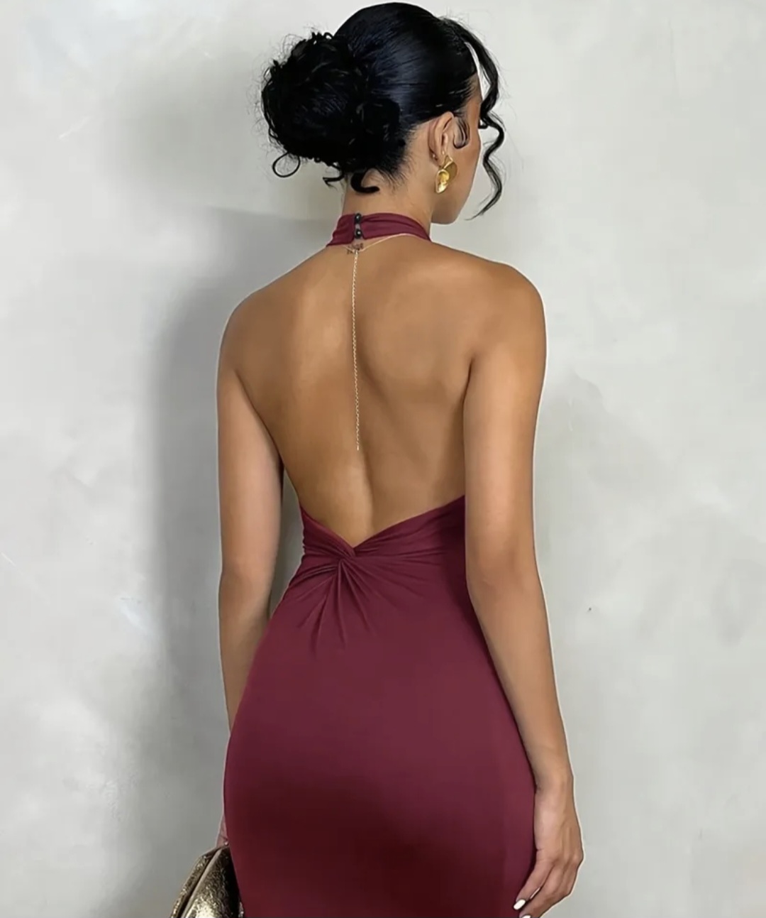 Dámske obtiahnute šaty s odhalenym chrbtom