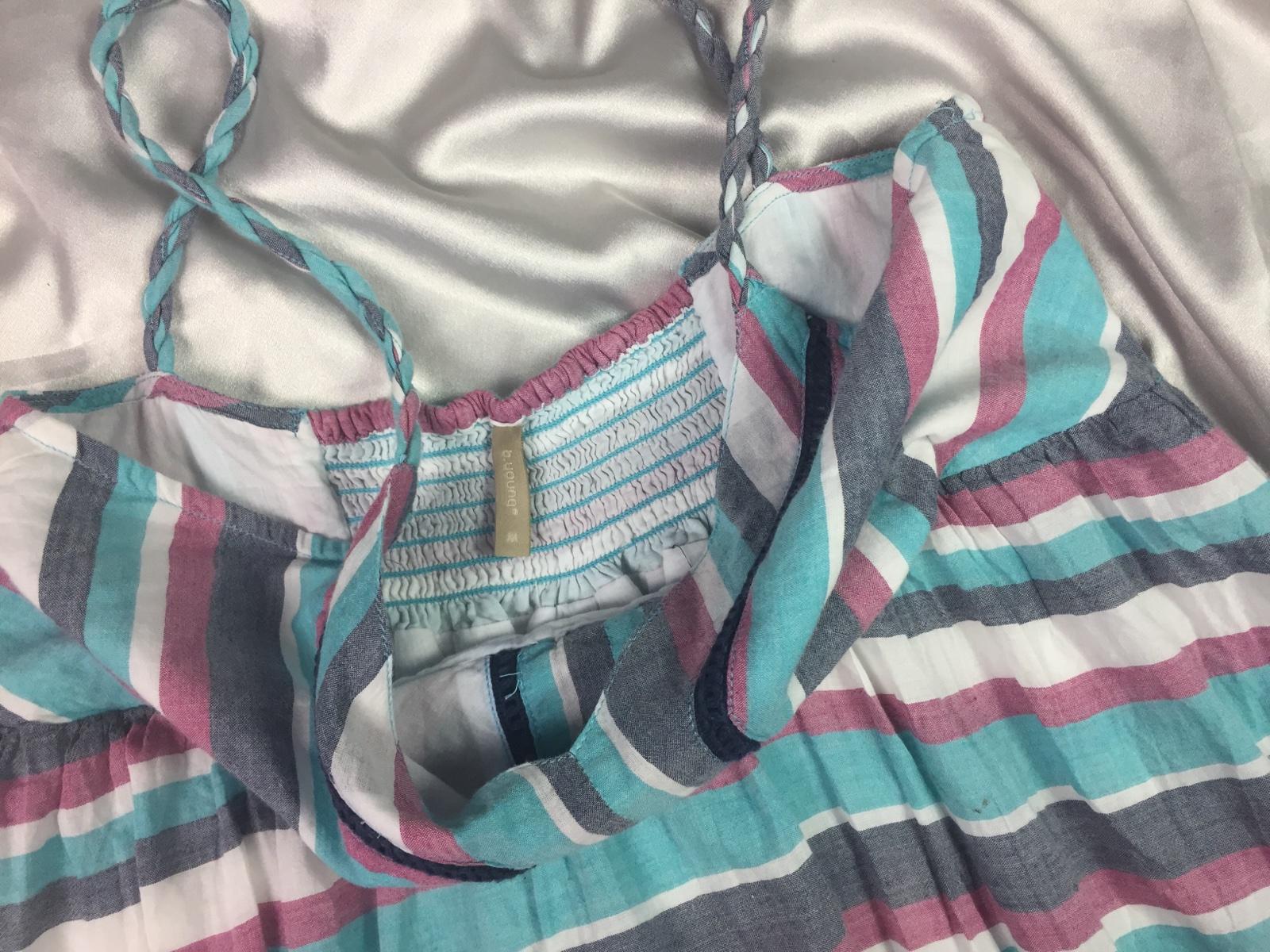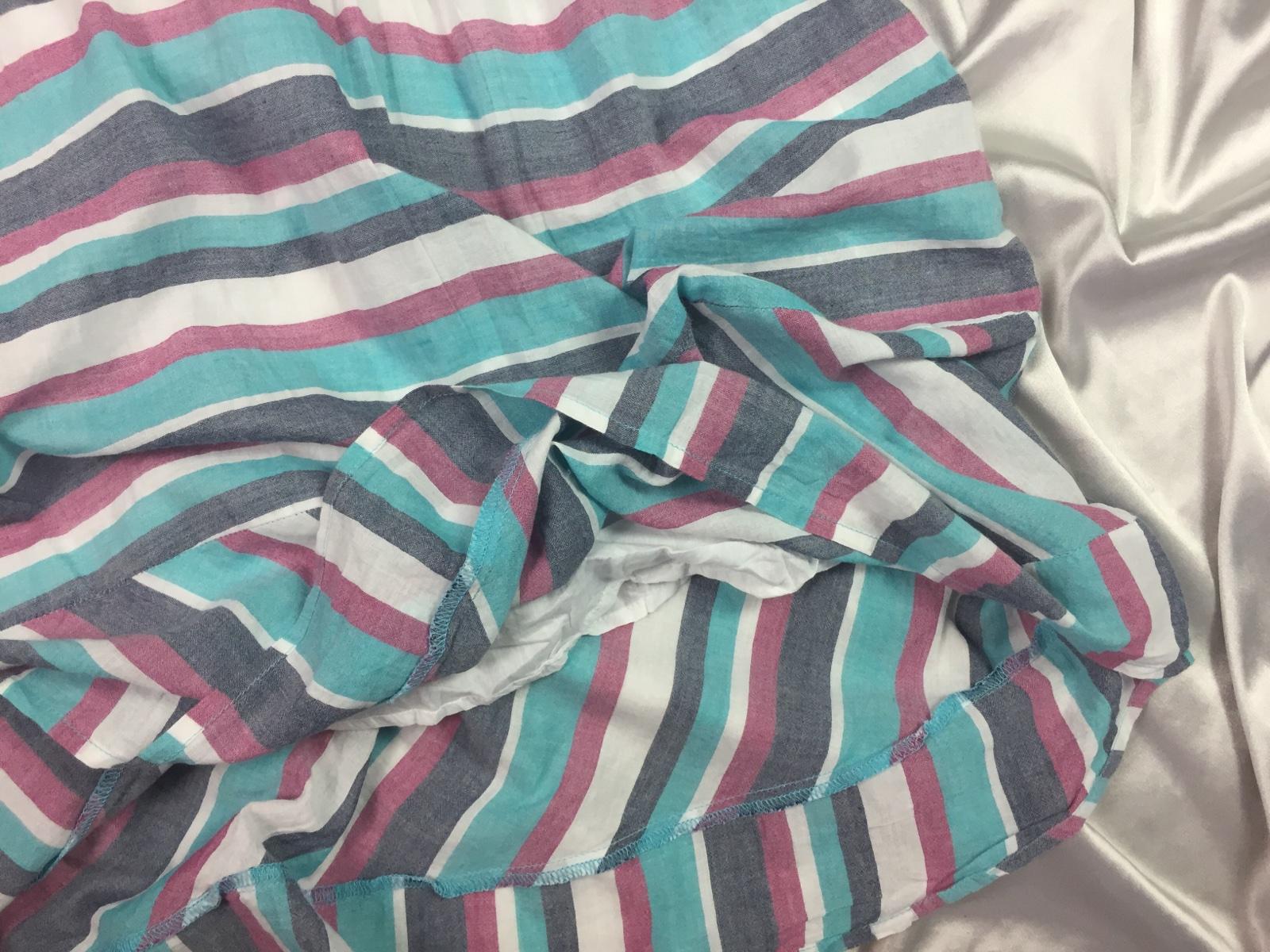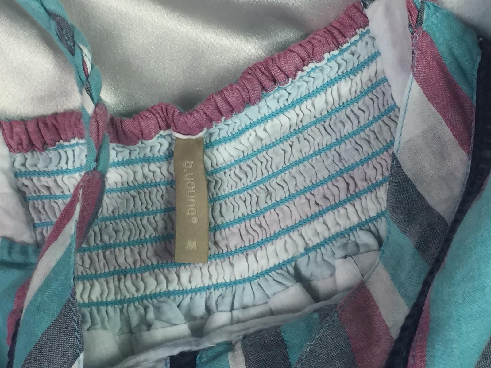 Materiál 100 % bavlna, podšité, vzadu nariasené do gumiek, super stav.