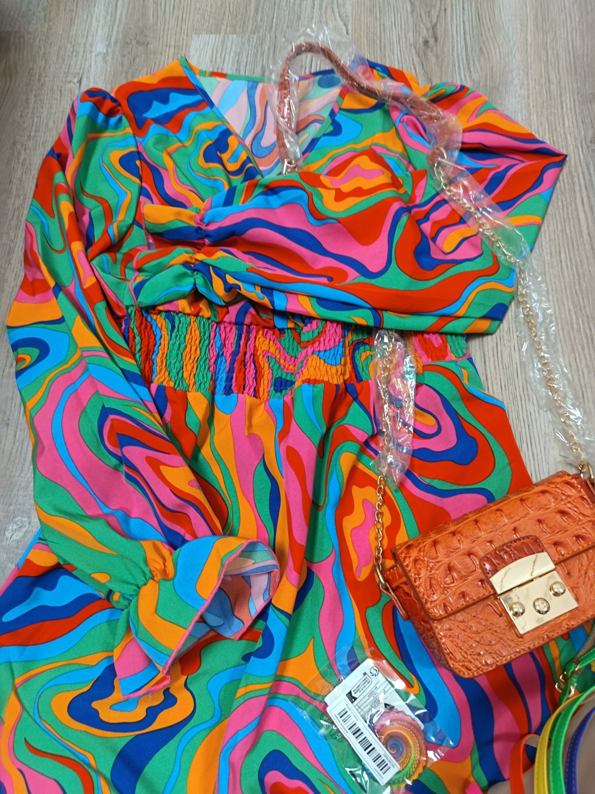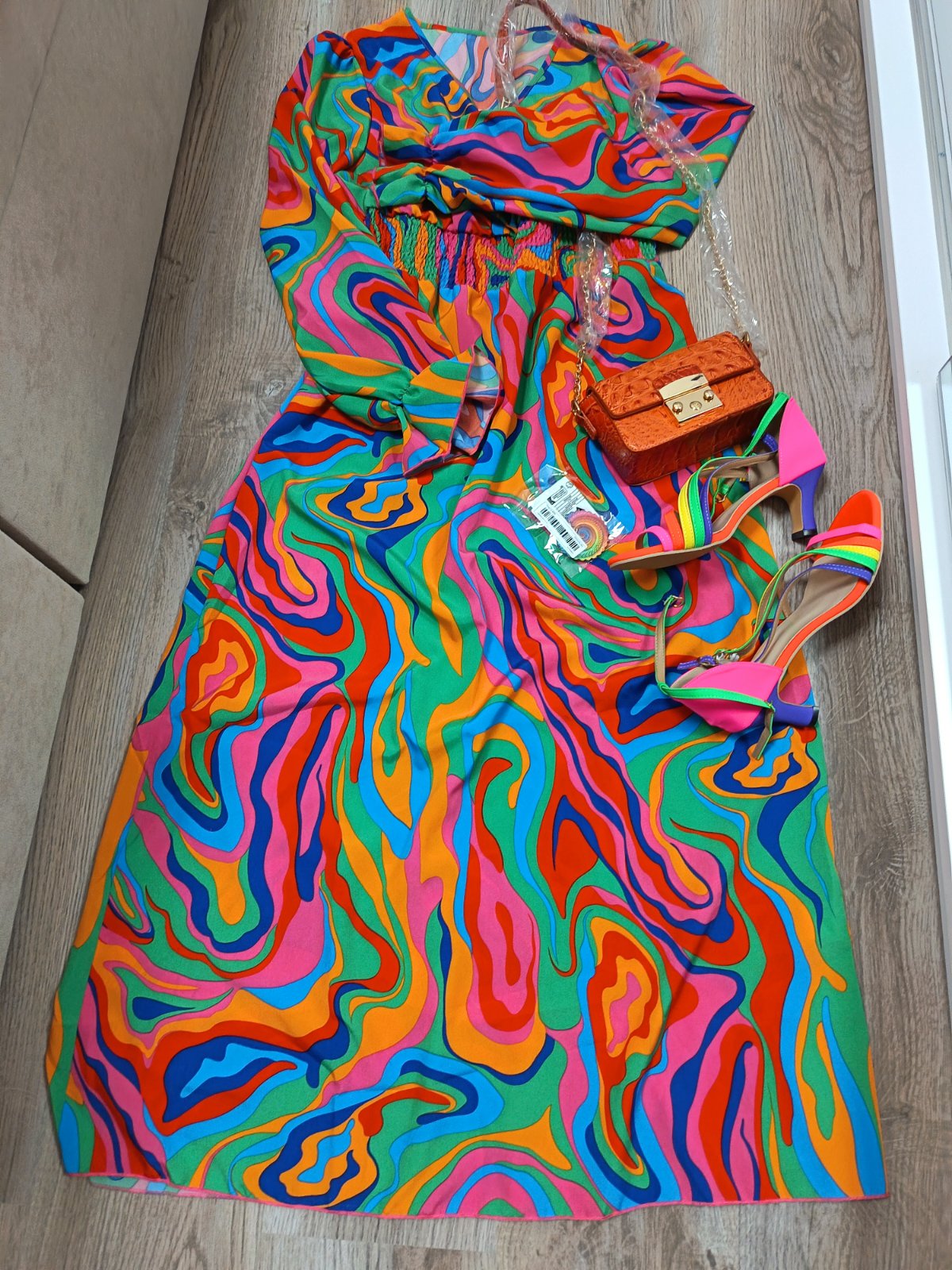 Zdravím žienky. Predám krásne šaty ktoré boli iba odskúšané veľ. XL ale vyhovujú skôr veľ. L, k tomu sandále veľ. 41 ale ja nosím veľ. 39 a sú mi dobré, kabelku a ako grátis prikladám náušnice. Dôvodom predaja je že šaty sú mi malé.Všetky veci na fotke sú úplne nové.
