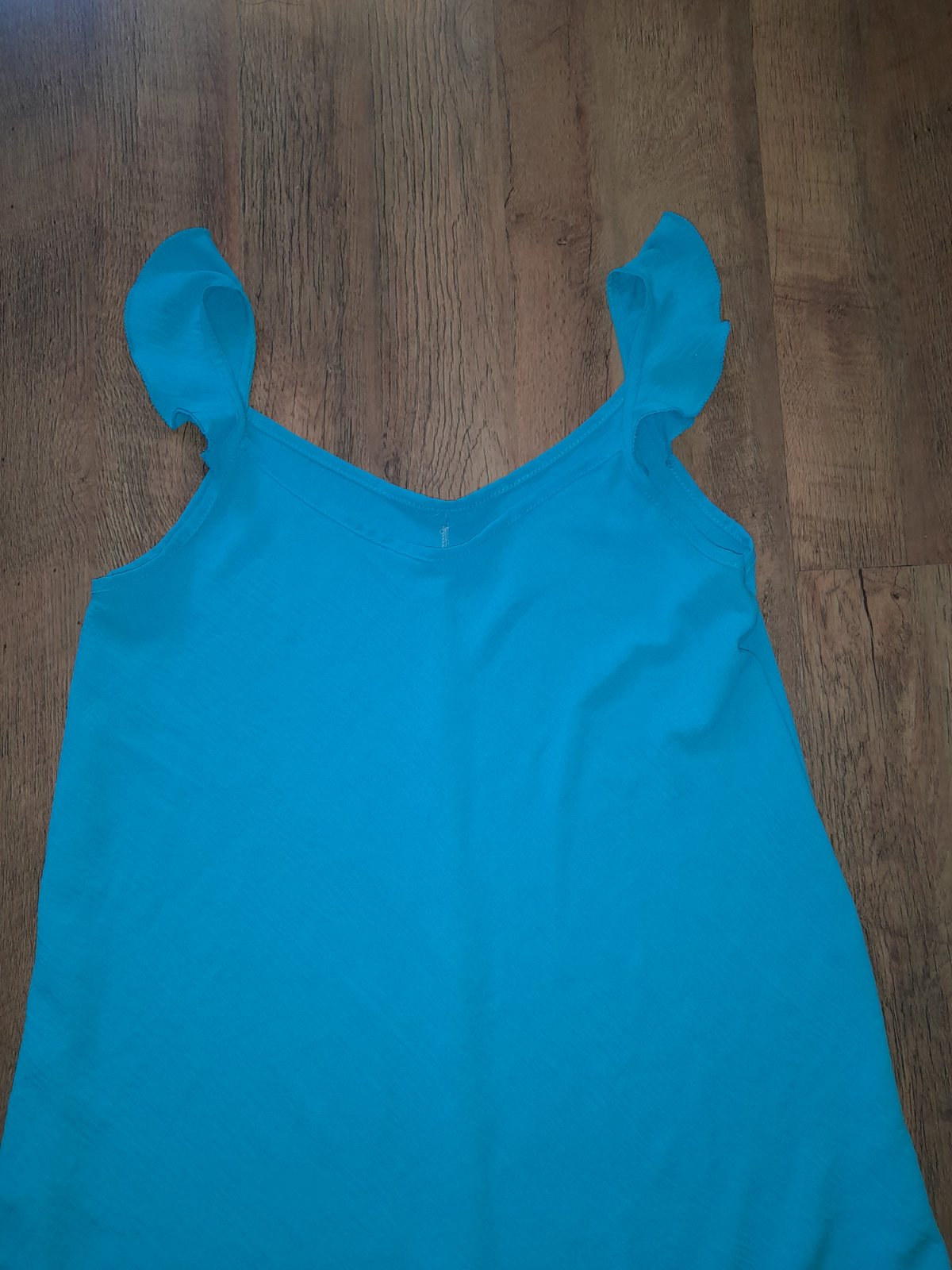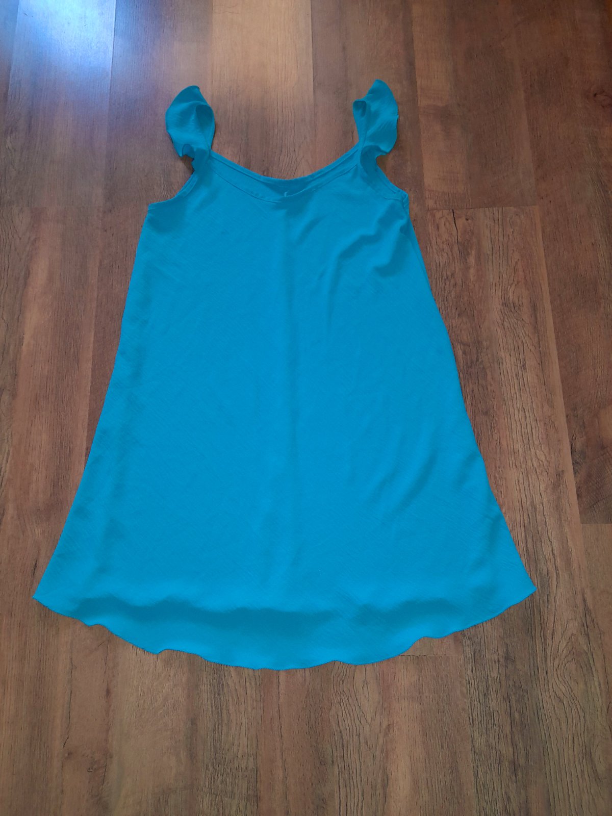 Predám pekne,letné šaty, nosené,v super stave.Velkost nieje uvedená, odhadom M/L. Farba je modrá/ tyrkysová. Na ramienkach sú volany.Rozsirujuci,ackovy strih.