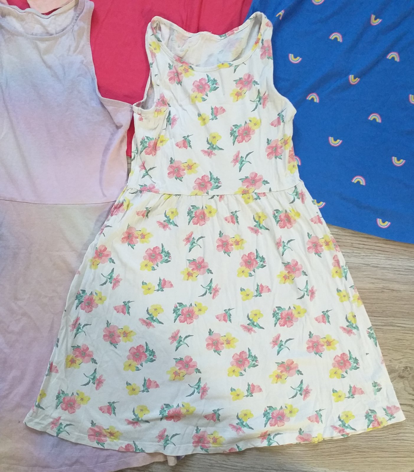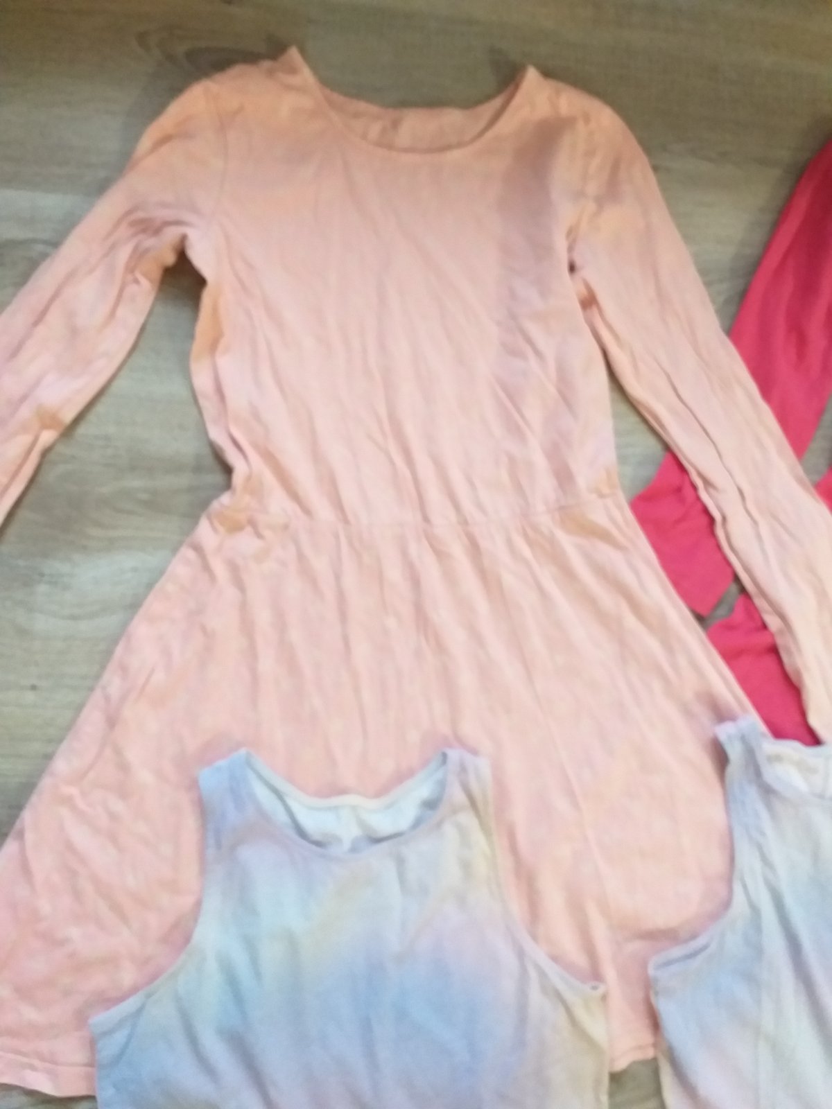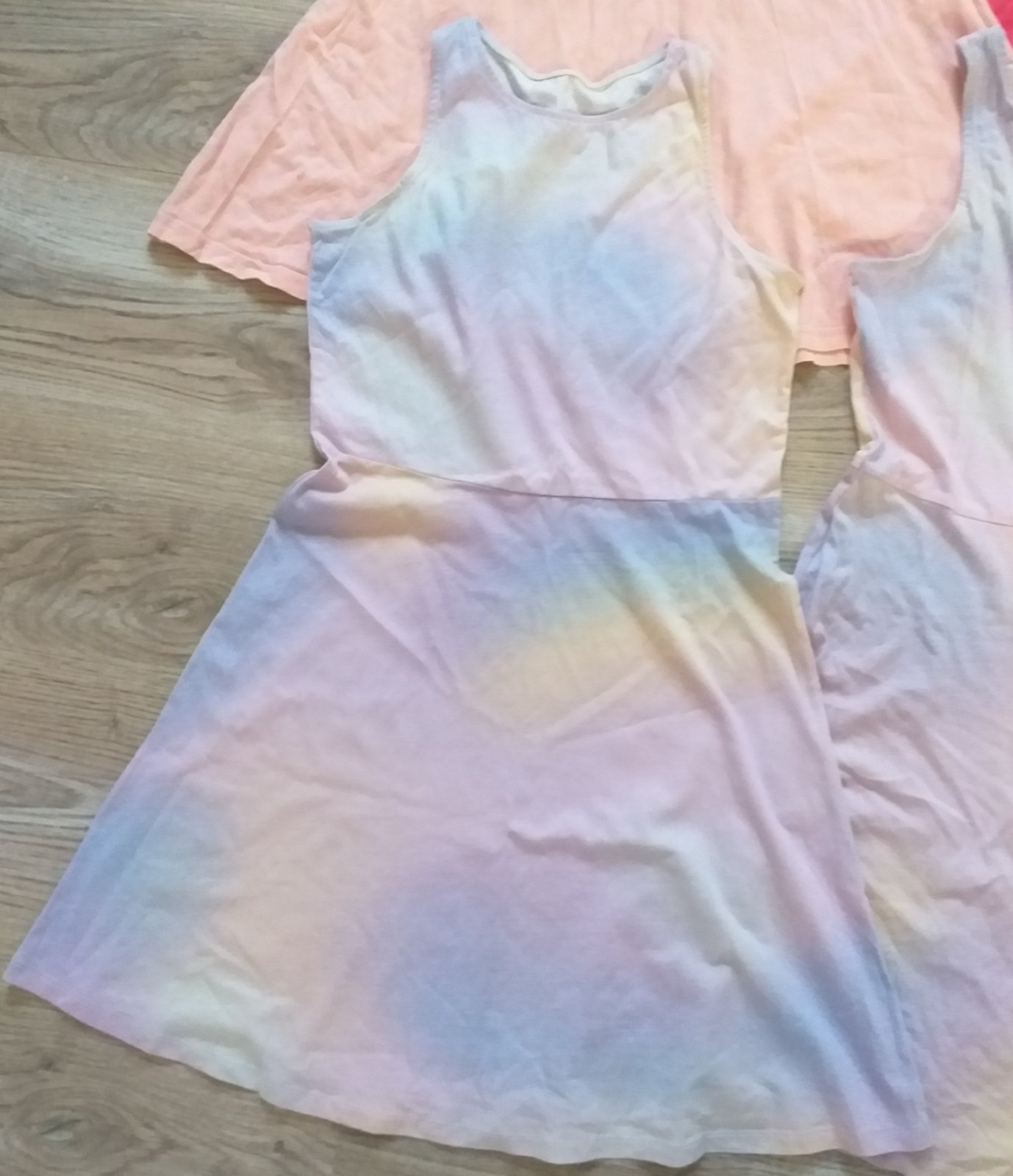 Všetky oblečené len párkrát, bez chybičky. Horný rad značka Bonprix, veľkosť 164/170, biobavlna, spolu 4 kusy, po 3 eur, fialové v spodnom rade HM 1ks nenosené, majú iba odstrihnutú visačku, po 2.50 eur, biele kvetinkové Kik tako nové, 2.50 eur. Spolu 14 eur.