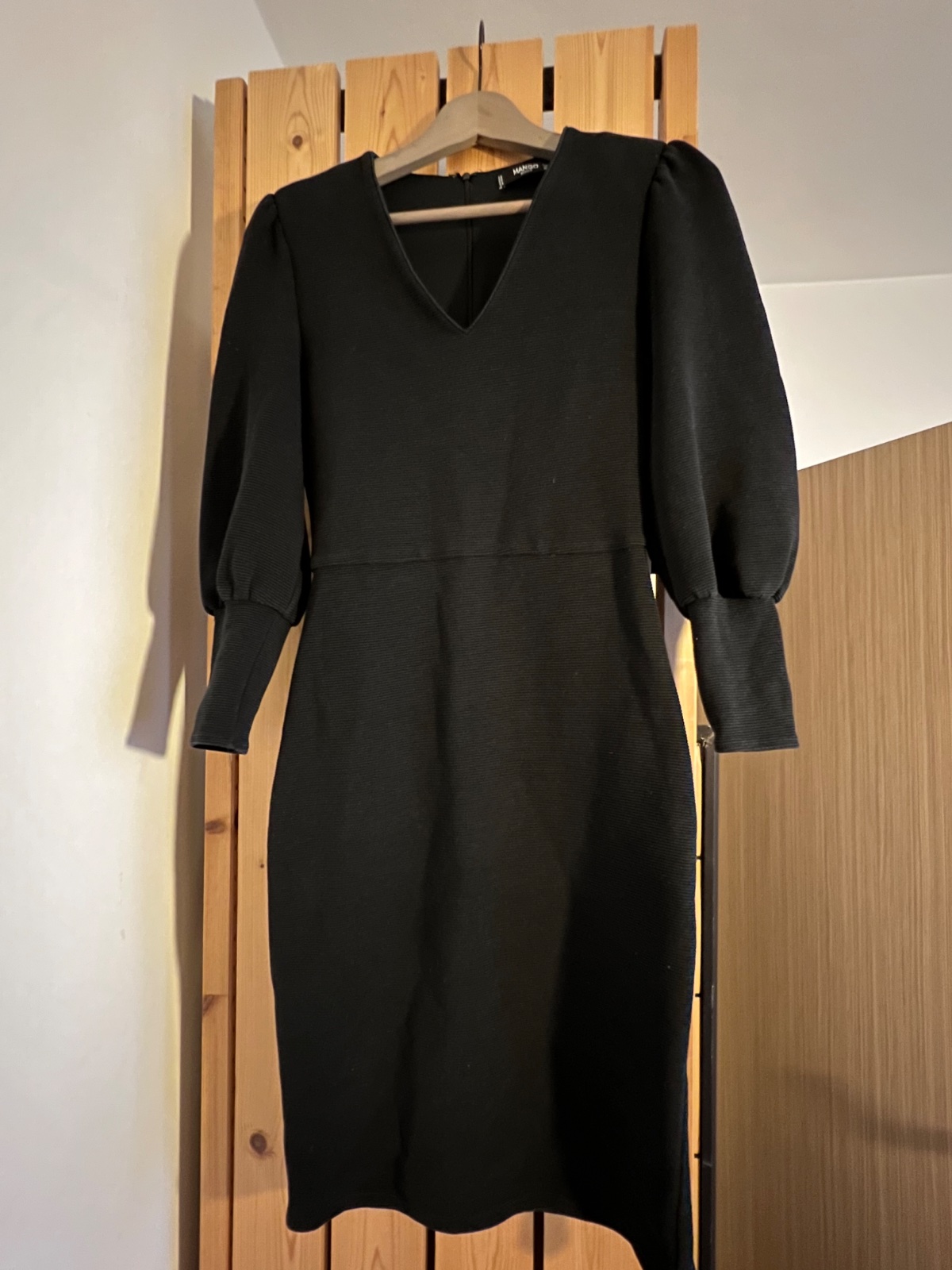 Biznis šaty / Little Black dress, ale skôr na bežne nosenie, než na príležitosť, pri výške 169 cm sú tak po kolena. Pekne tvaruju postavu, vhodne tak na jeseň/jar