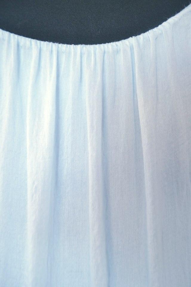 krásne bledunkomodré letné šatočky, výborný materiál, podšité, nikdy nepoužité, kúpené v Taliansku, bez akýchkolvek poškodení, v 100% stave....celk. dl. 99cm, šírka pod paz. 2x45cm.....pošt. a bal. 2,0 doporučene