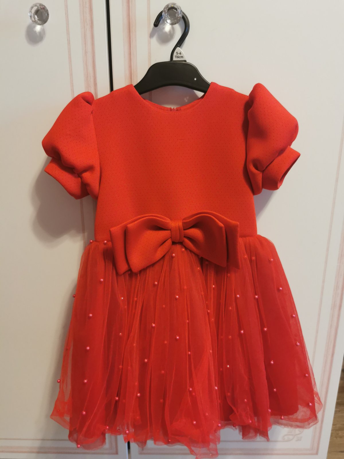 Dievčenské šaty Tchibo, veľkosť 110/116. Vhodné na vianočné fotenie, ale aj na bežné nosenie do škôlky/školy. Nosené, v dobrom stave.