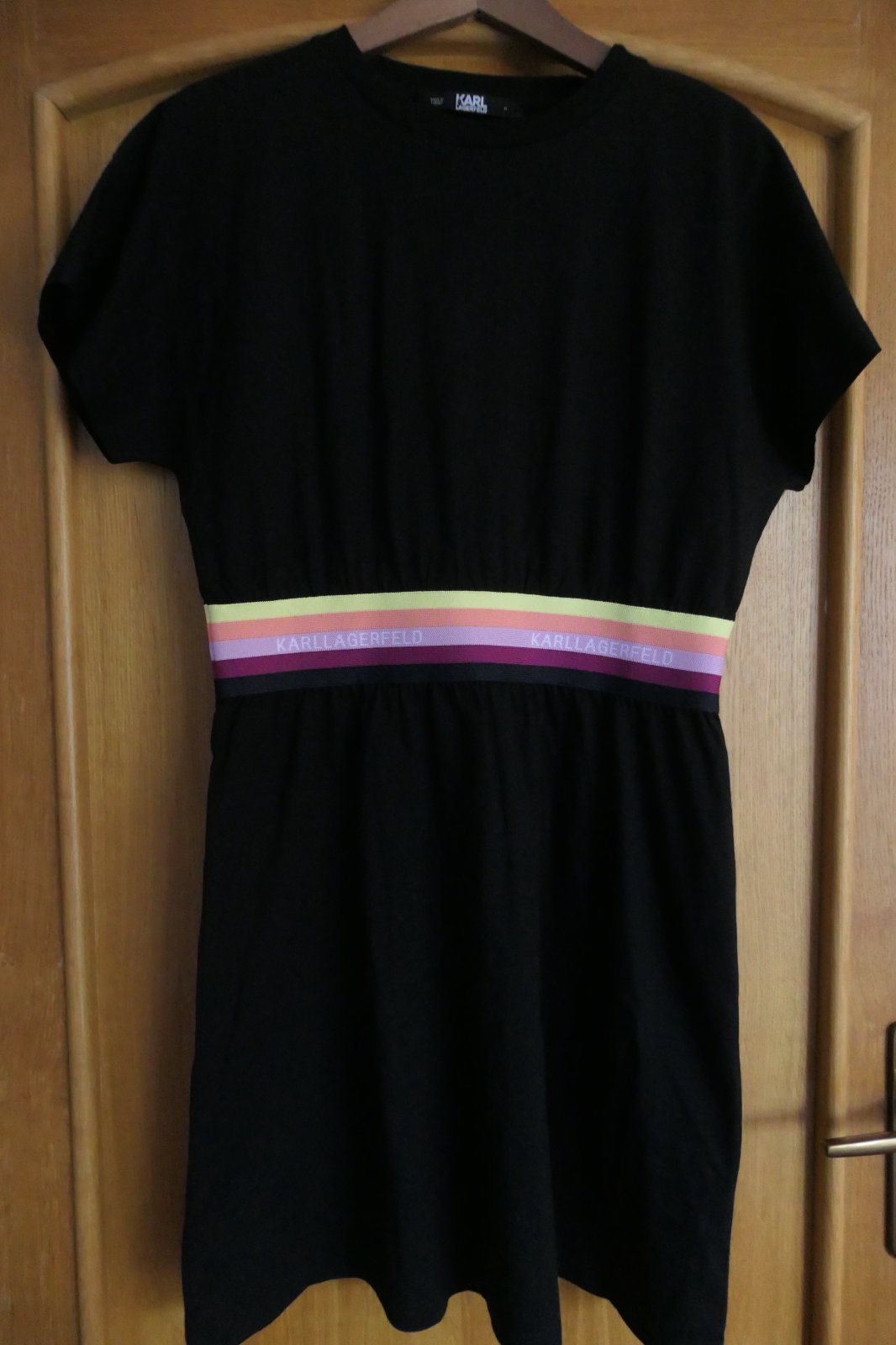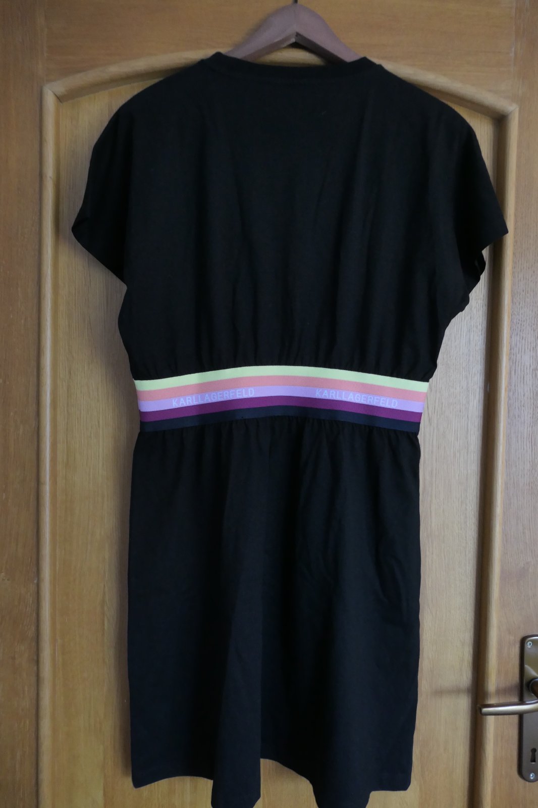 top stav, ako nove, bavlnene trickove saty, s pruznou farebnou gumou v pase s napismi KL, pohodlne, prijemne, vzdusne,