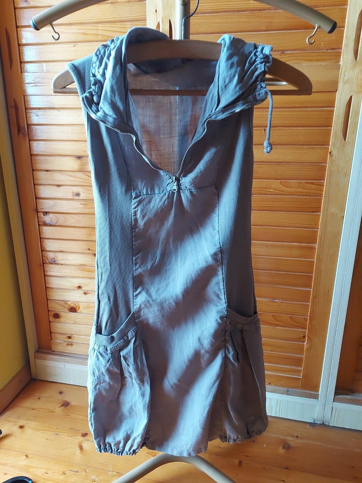 Hnedé letné šaty s kapsami, XS/S, š. pod pazuchami v kľude 35, dĺžka - 80