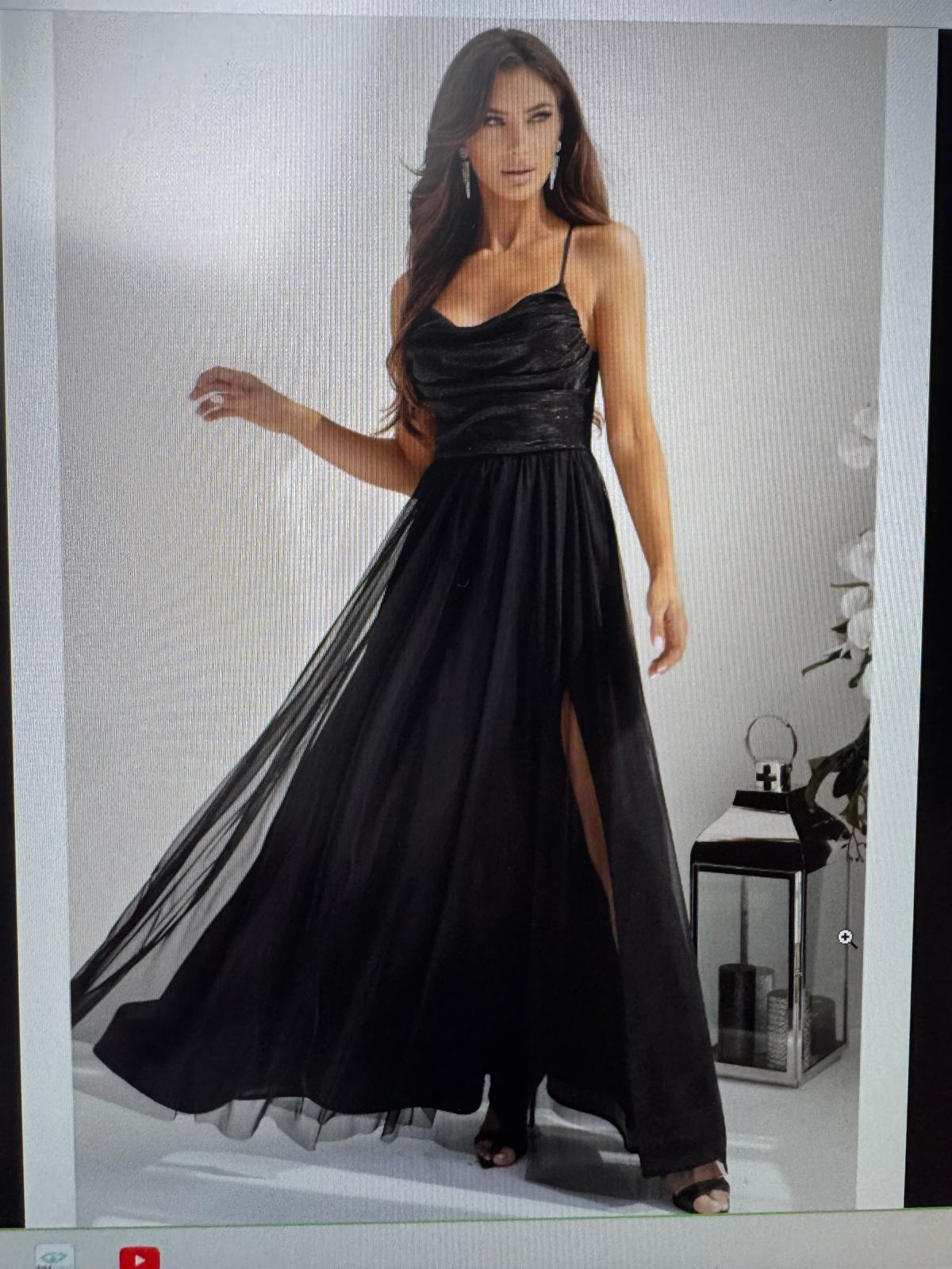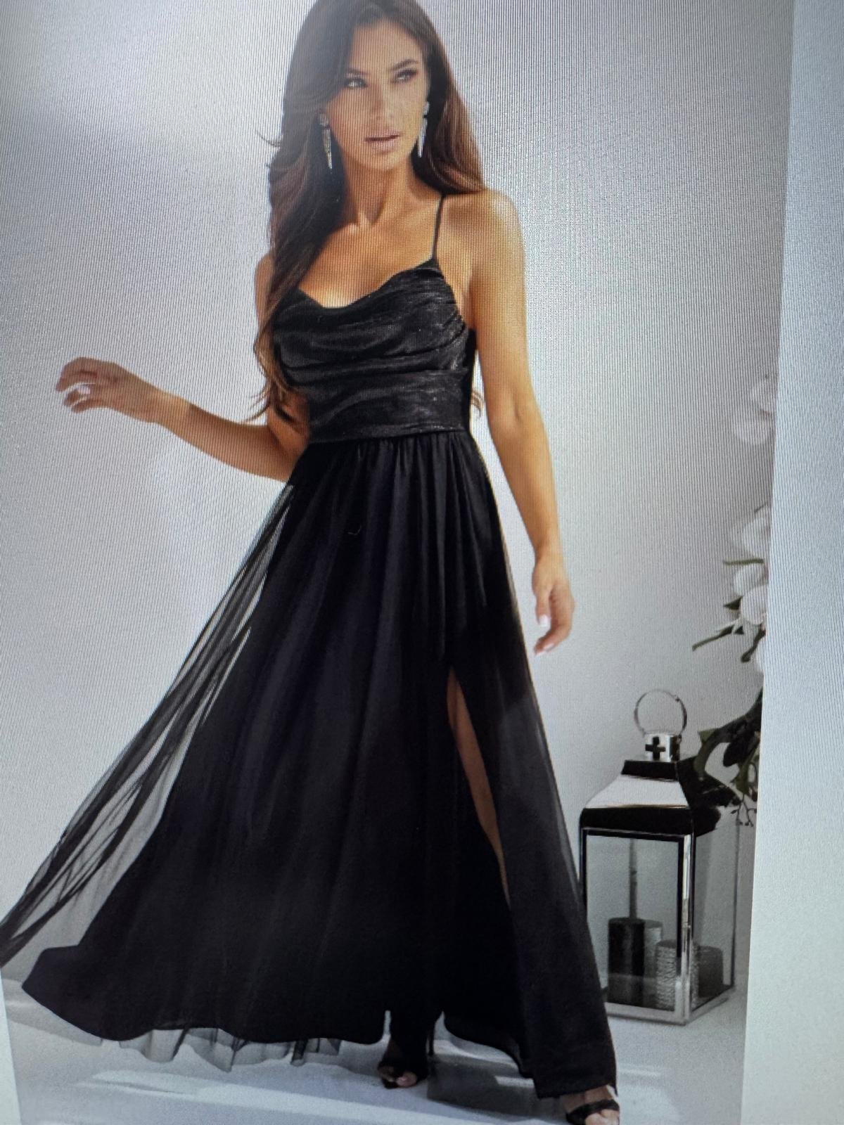 Nadherne trblietave spolocenske saty. Raz oblecene, kupovane v salone. V cistiarni vycistene. Krasnu postavu robia, jemny vystrih, vzadu je zips aj snurovacka, cize sa prisposobia. Ramienka nastavi...