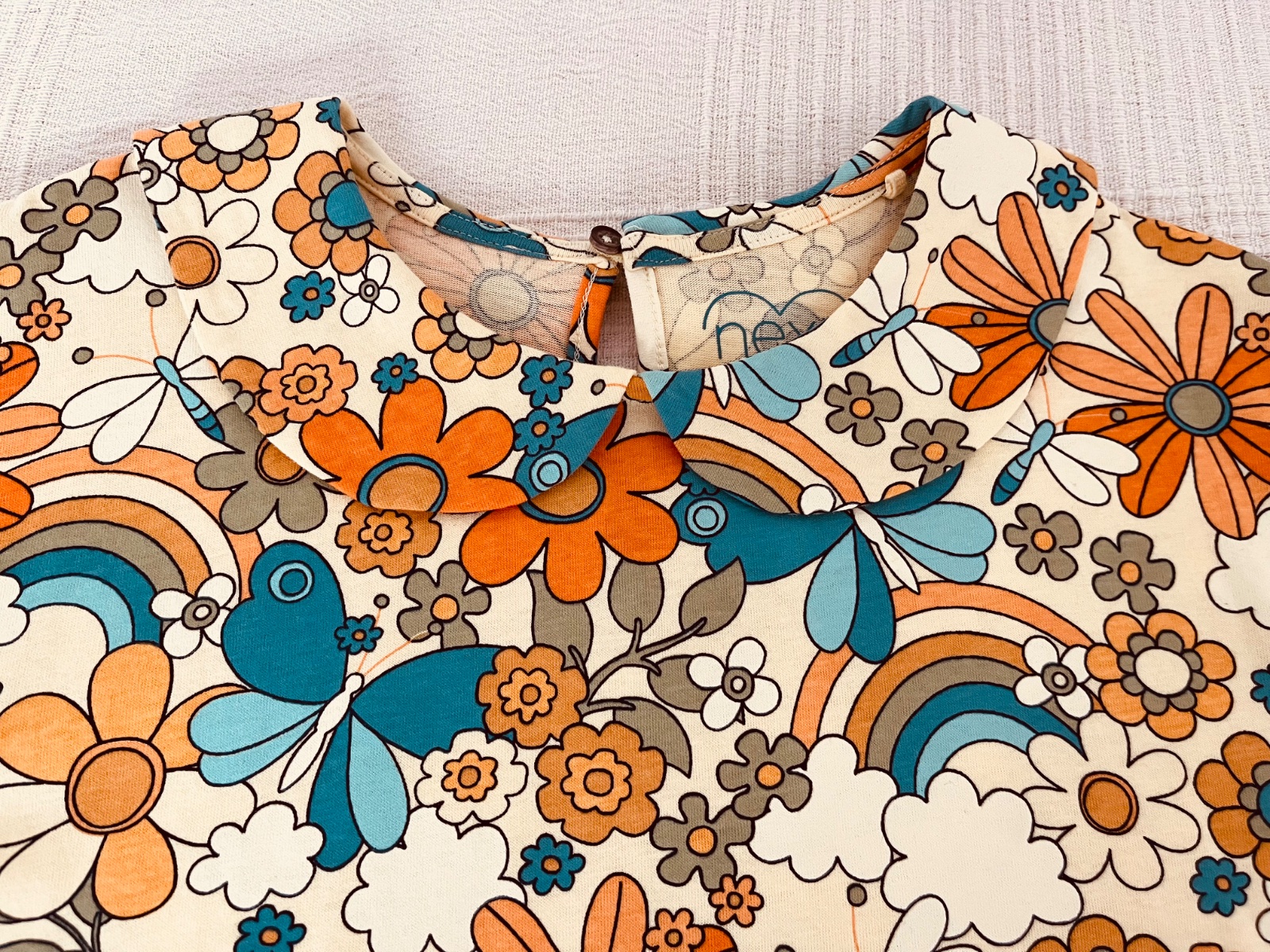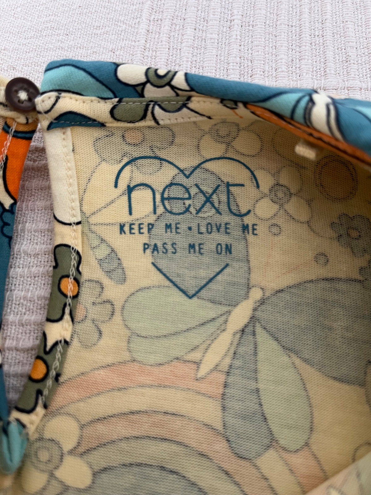 TOP STAV - Krasne saty zn.Next, velkost 122, ale ponosite aj dlhsie. Uzasny retro vzor, sirsi strih.