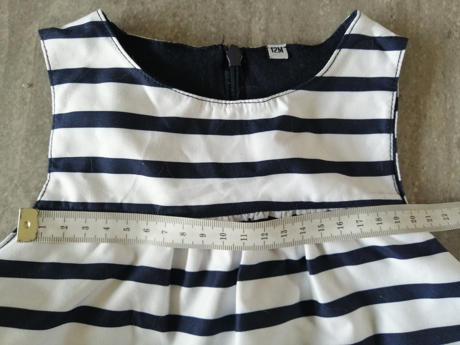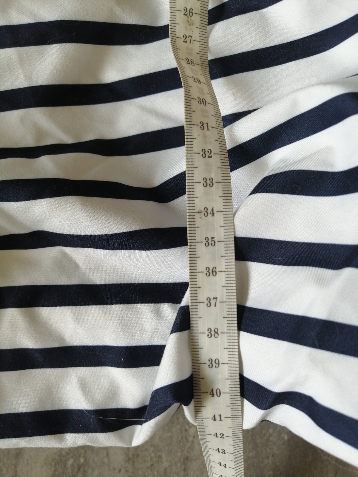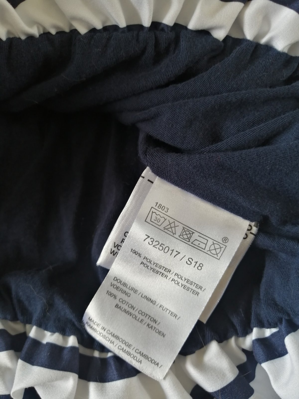 Námornícky štýl. Tmavomodré pásiky. Podšívka z tričkoviny, čistá bavlna.