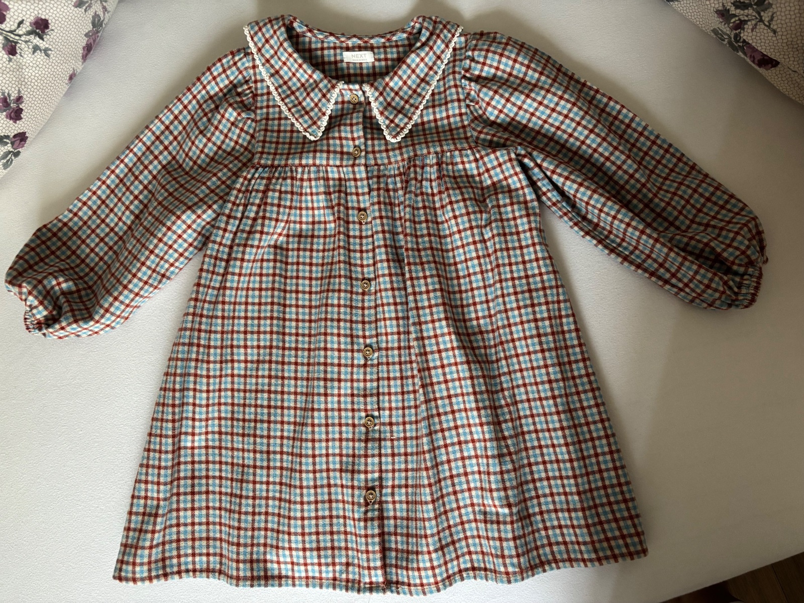 Predám krásne kárované next šaty v top stave, veľkosť 110.
