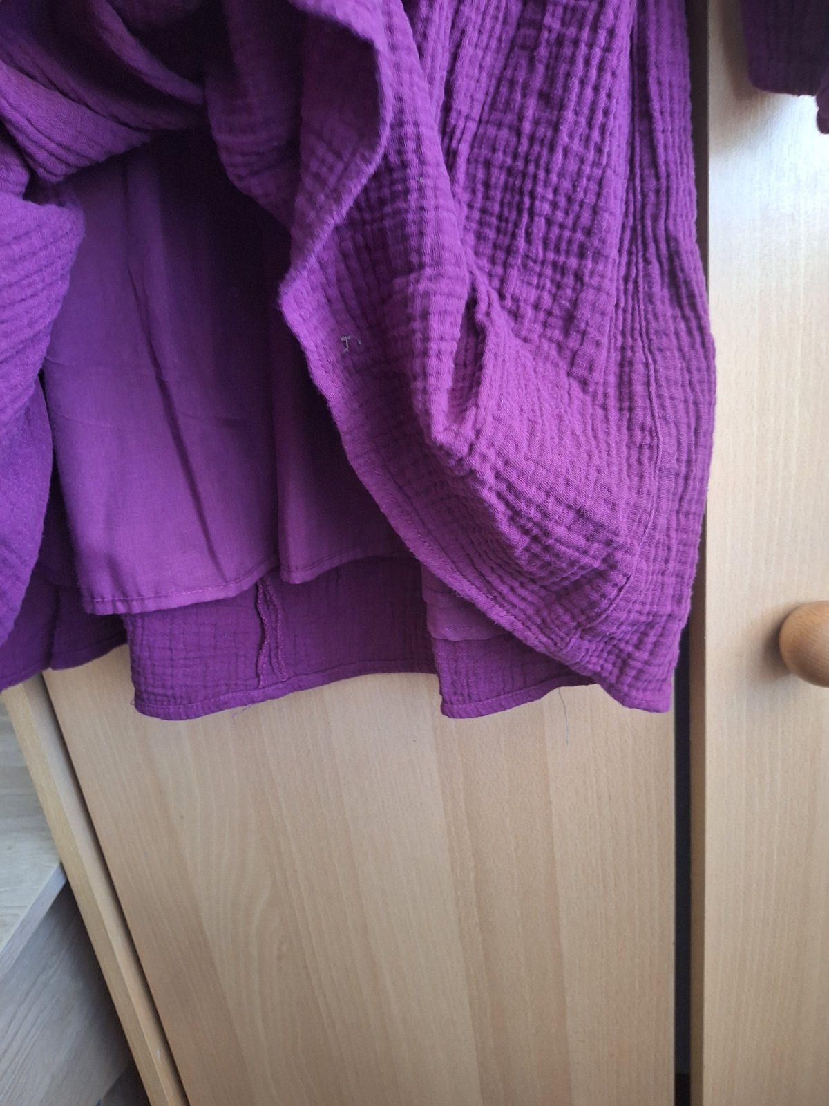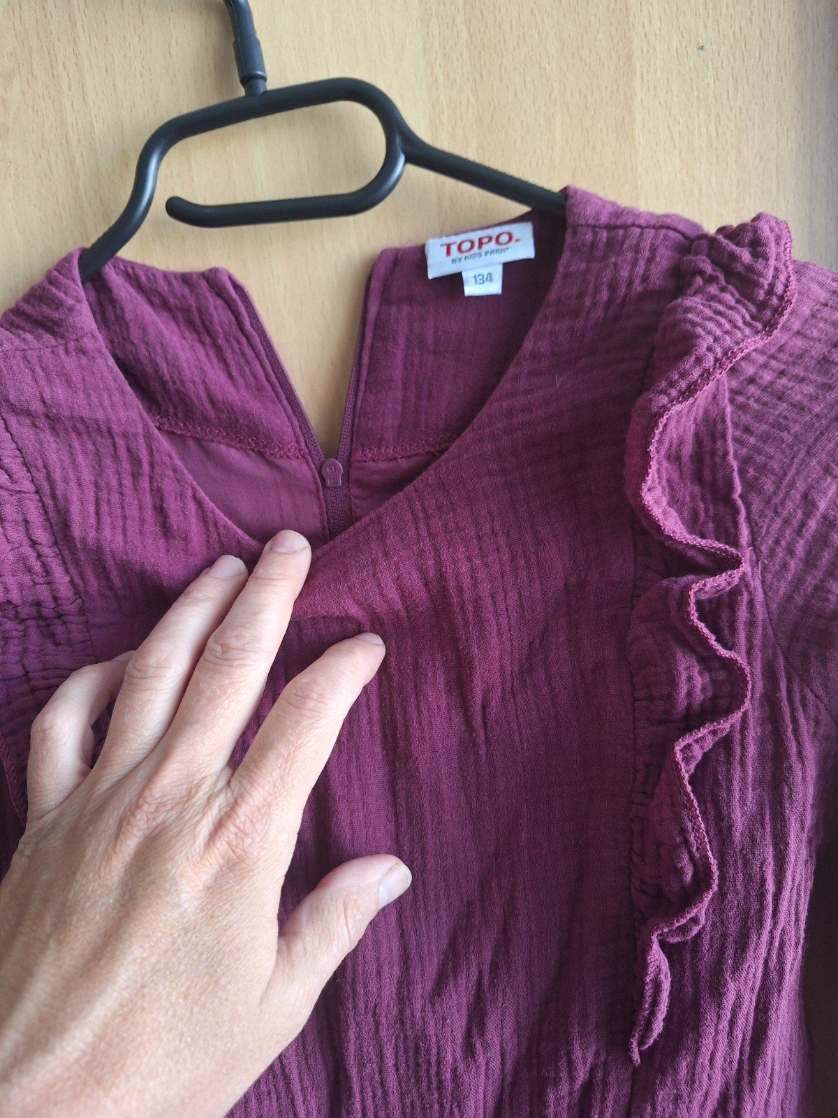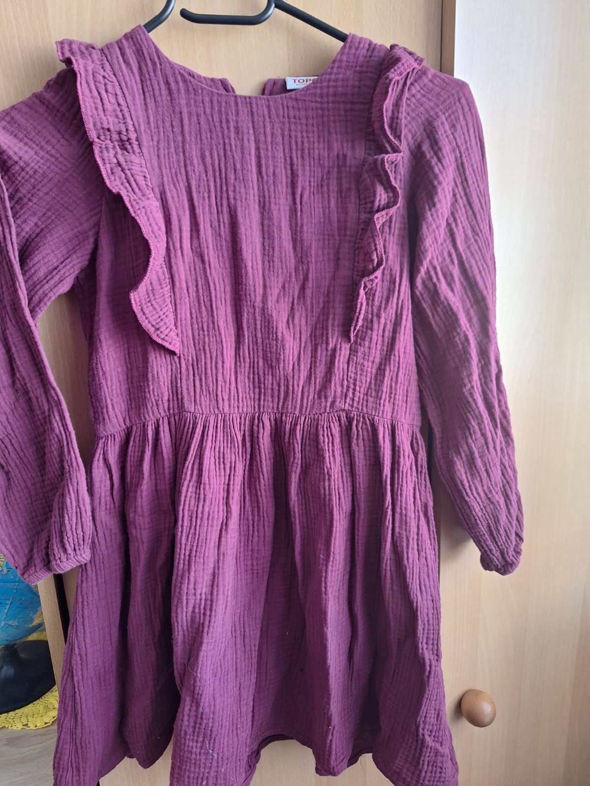 Predám fialové šaty s volanmi, prijemna, jemná latka na nosenie. Vyzeraju na fotke jednoducho ale oblečene su krajšie, a pekné. Pisana velkosť 134, ja by-som dala 134-140. Dlžka 71cm.