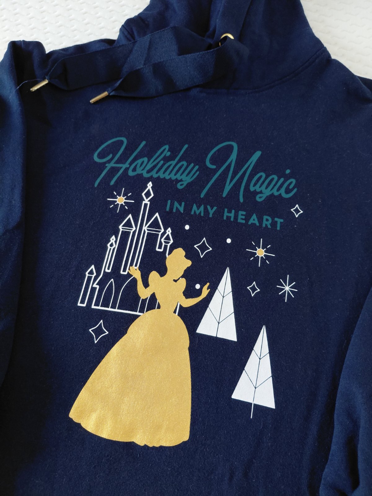 Teplákové, tmavomodré šaty s potlačou Disney Princess, s kapucňou