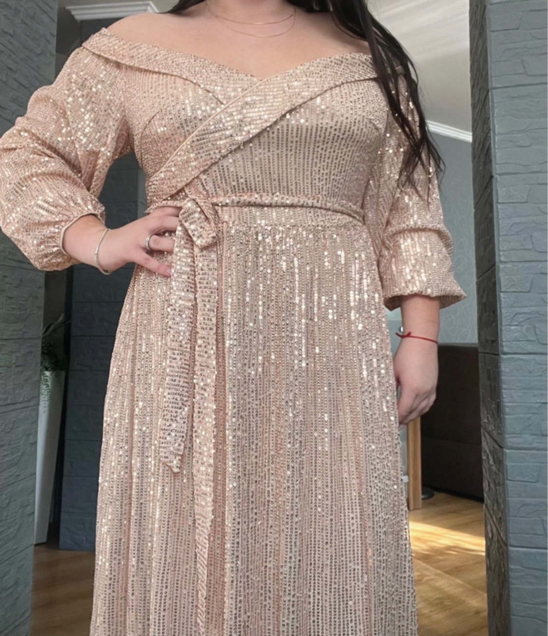 Spoločenské šaty vo veľkosti 44/46 prsia: 112 - 118 cm Pás: 104 cm Dĺžka: 142 cm