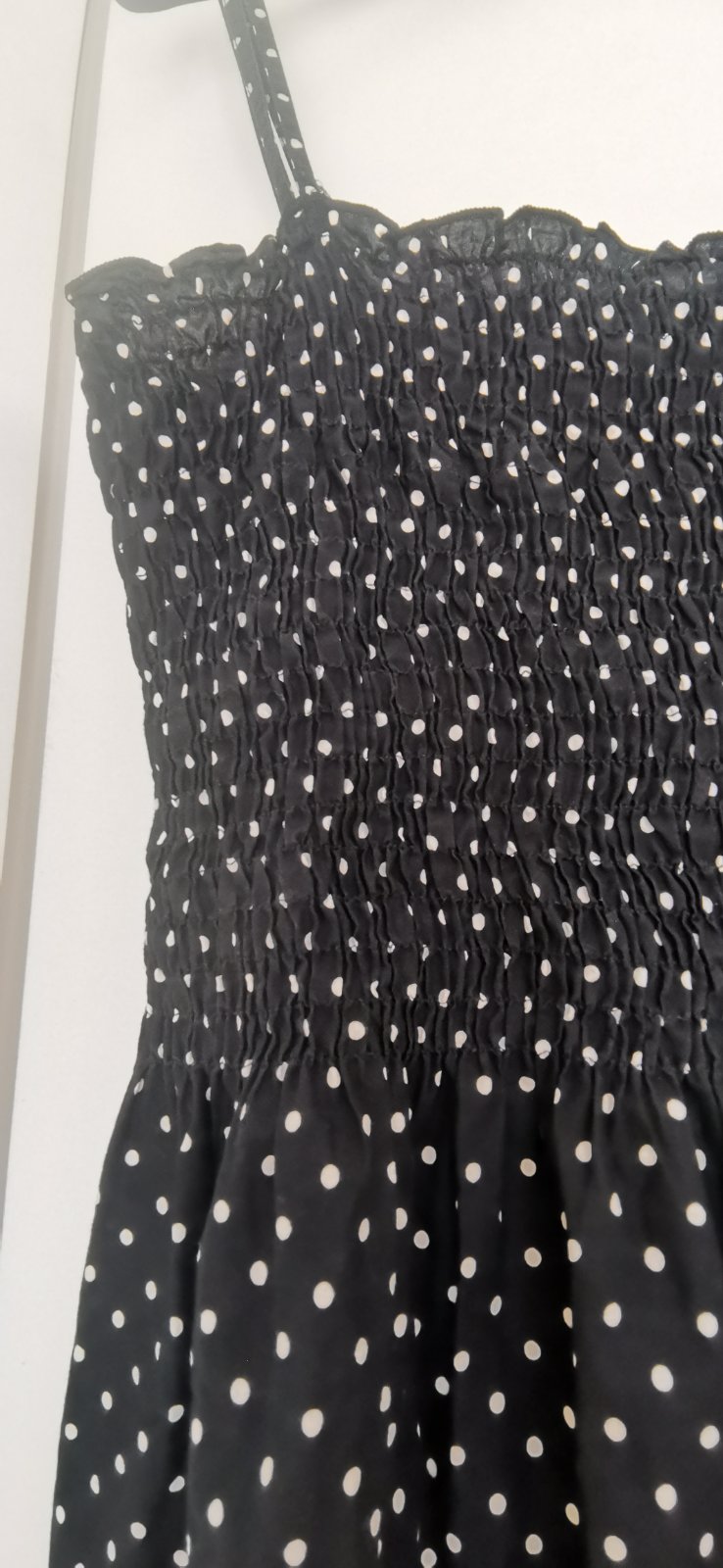 krásne letné minišaty s bielymi bodkami šaty sú na gumičku takže sa krásne prispôsobia postave ramienka sa viažu, šaty však držia dobre gumičkou aj bez ramienok dlžka 74cm gumička sa naťahuj...