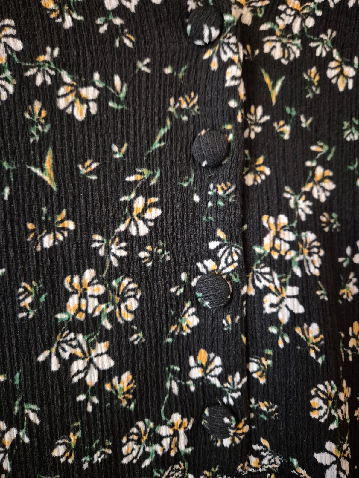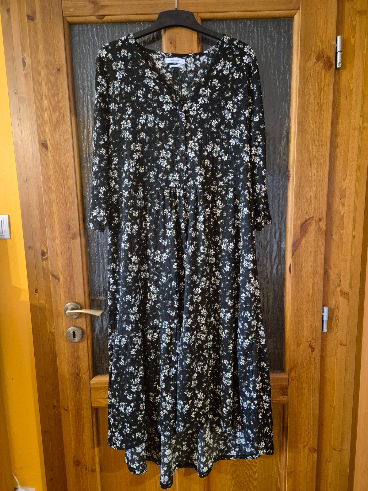 Predám dlhé šaty zn. Reserved veľkosť M, jemné kvietky na čiernom podklade, vzadu dlhšie. Vpredu pekný detail s gombíkmi.