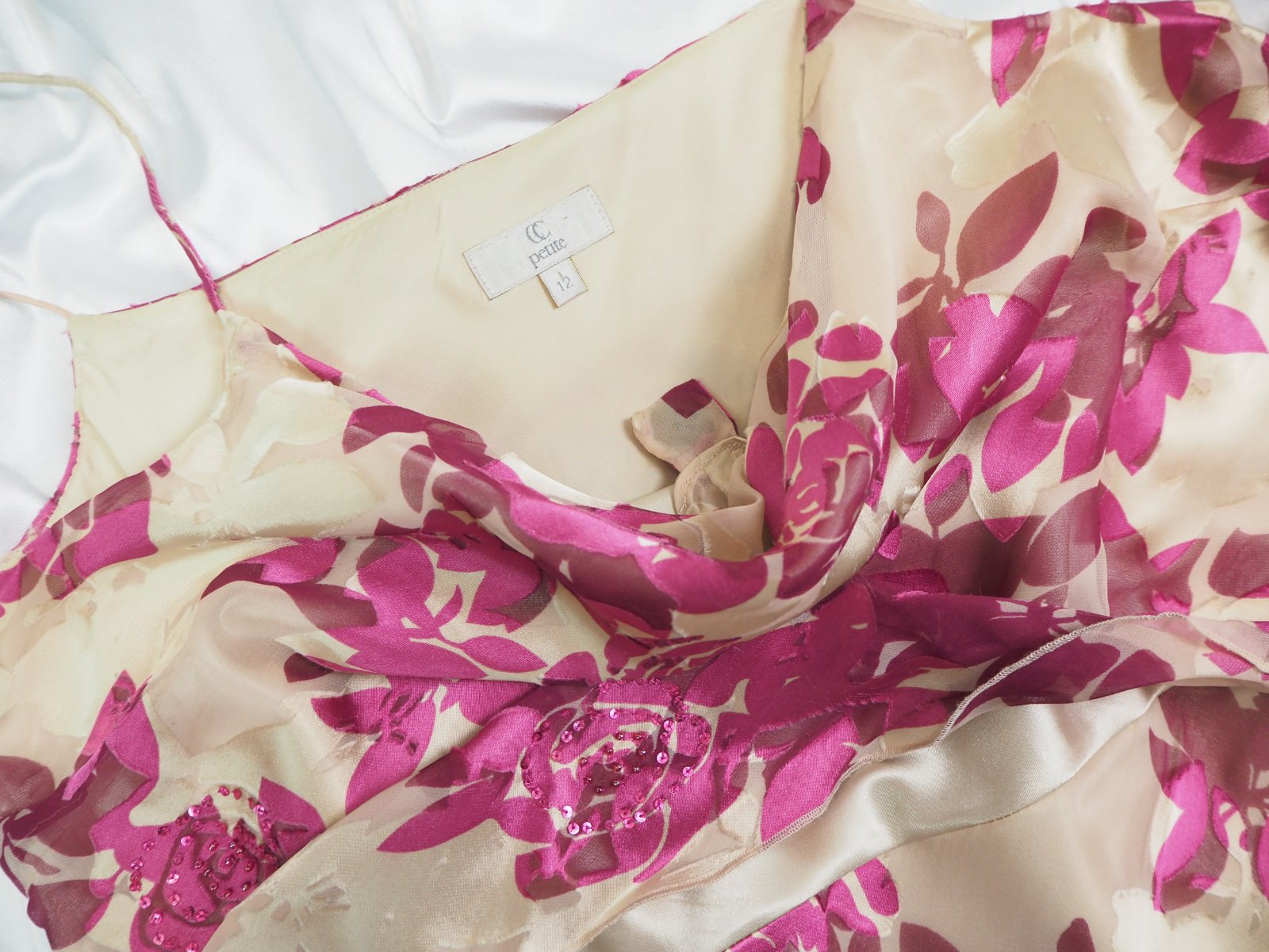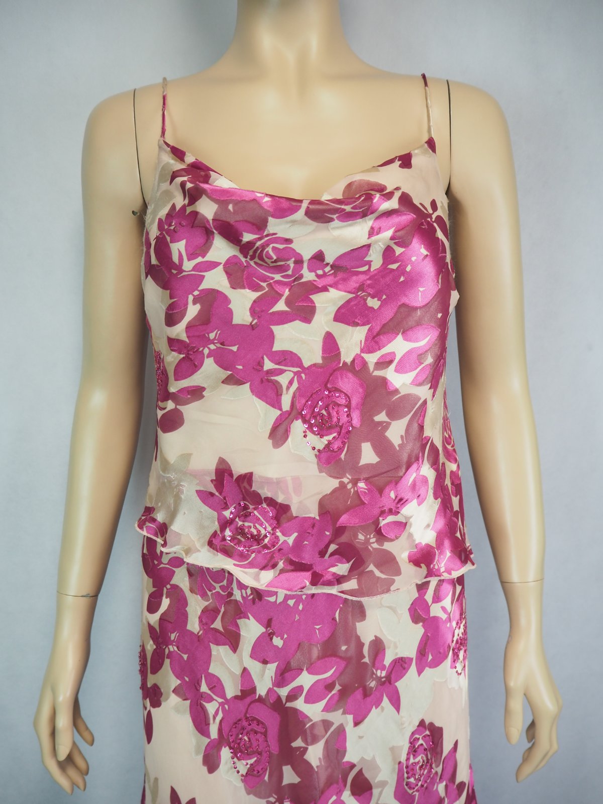 Luxusné hodvábne šaty, na ramienka, padavý výstrih, materiál 59% viskóza, 41% elastan, podšívka polyester, super stav.