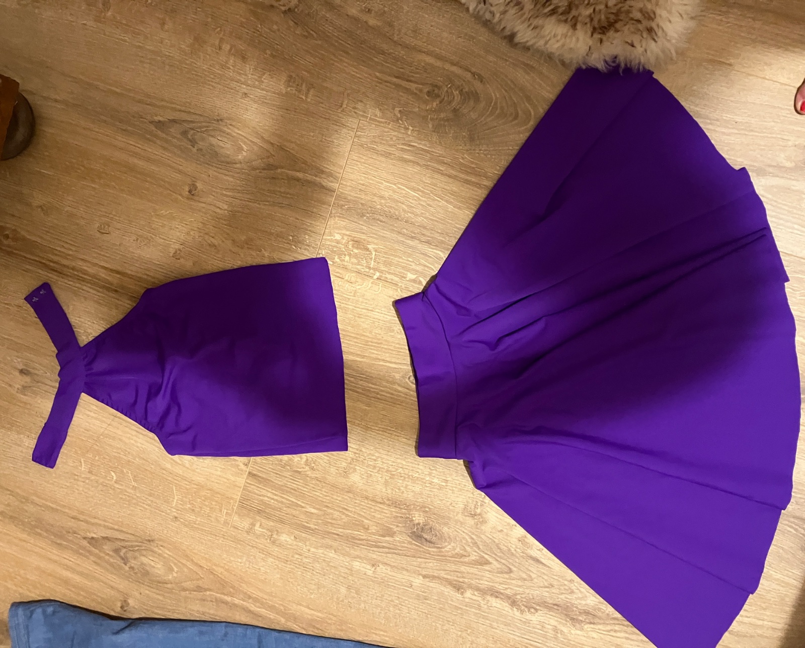 Fialové letné elastické (neckholder) sukna vhodná aj súťaže (2 polkezhy/ kruhová), máme aj zvyšnú látku na body