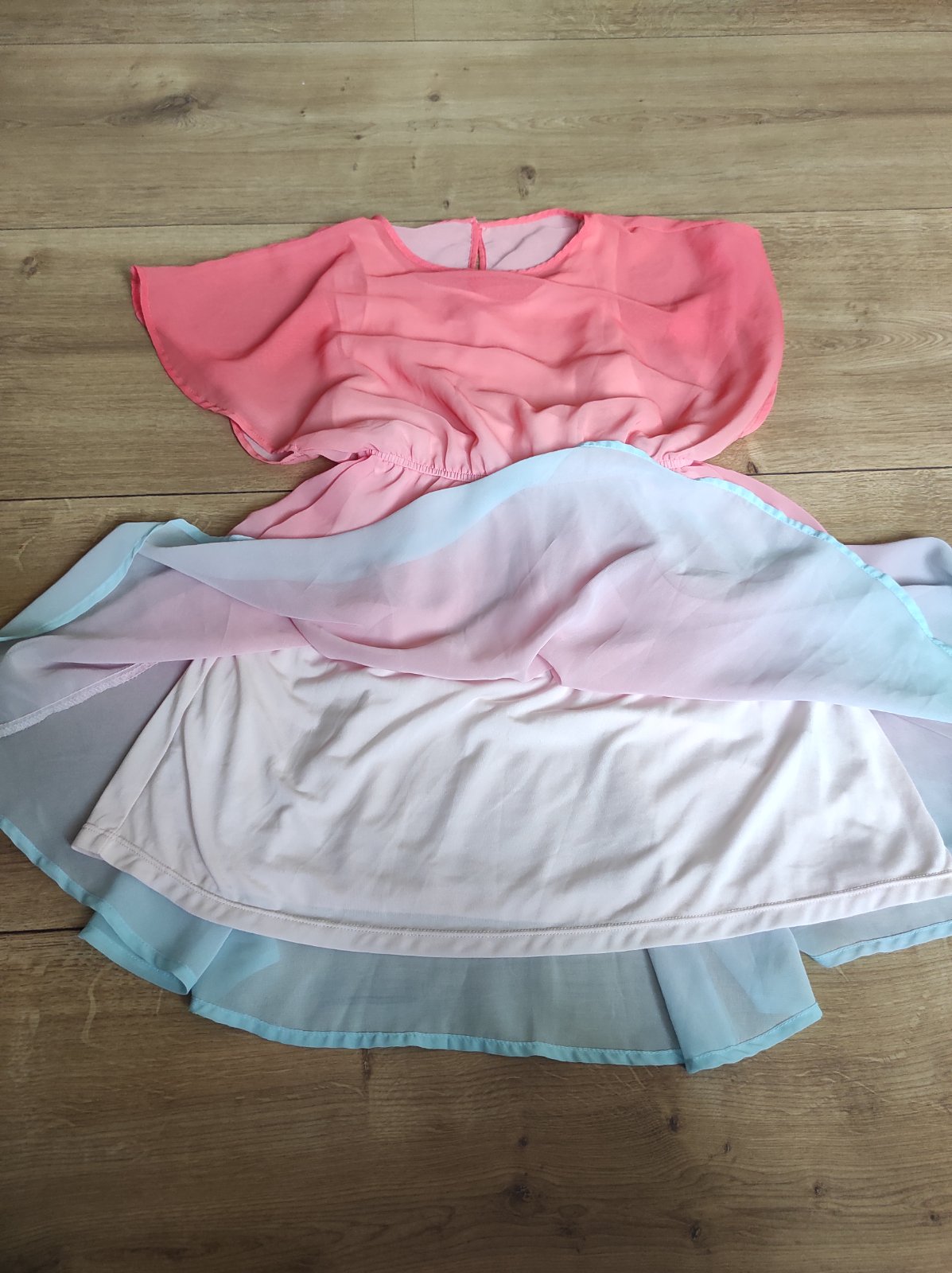Vrchná časť podšitá bavlnenou podšívkou, sukňa podšívka + 2 vrstvy tylu. Veľkosť uvedená 146/152. Celková dĺžka 83 cm. Šírka pod pazuchami 2x34 cm.
