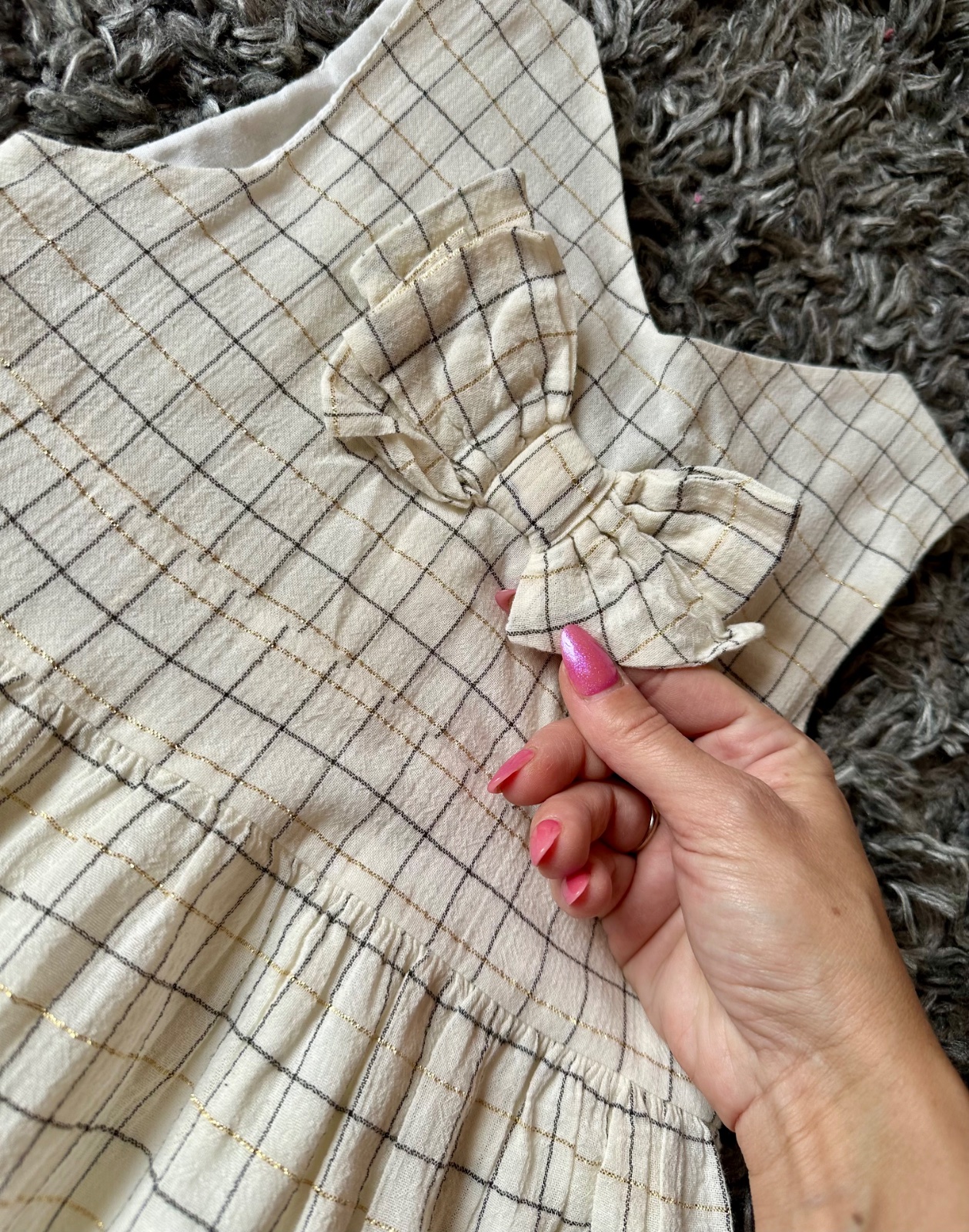 Raz oblečené - kupované len kvôli jednej príležitosti. Veľmi pohodlná krepovitá látka podobná ľanu. So zlatými aplikáciami.