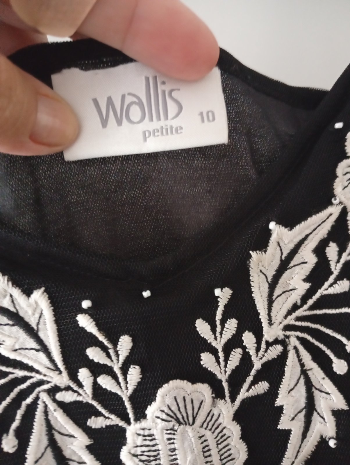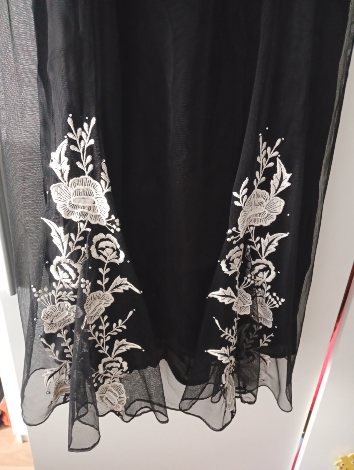 Predám krásne, ľahučké, tylové šaty na tylové ramienka s bielymi vyšívanými vzormi č.38,naboku zips.Pekne sa točia, podšívka.Mne úzke na prsiach.Pre obvod 70/75 B