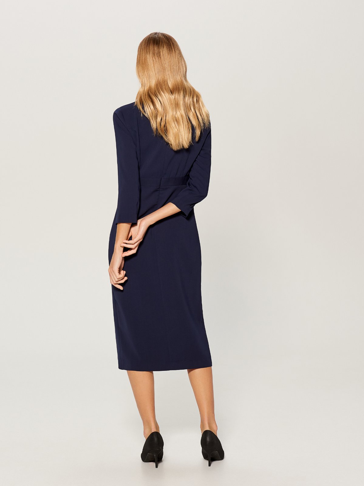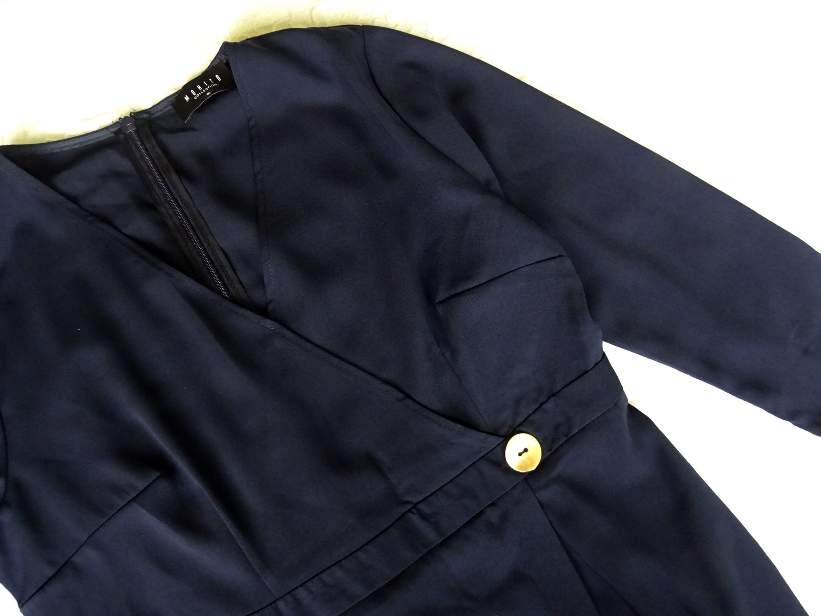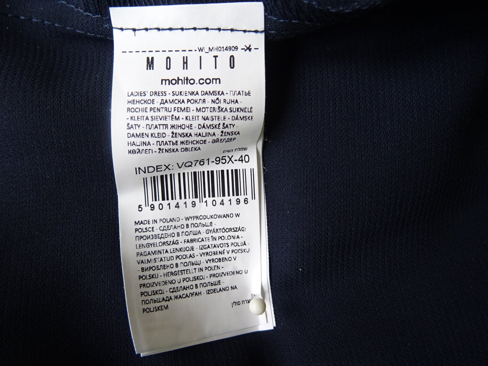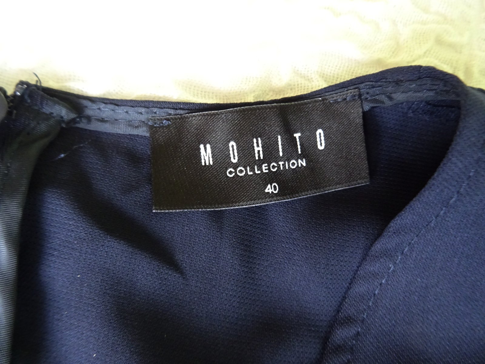 Dámske šaty Mohito, farba úplne tmavo modrá - navy. Veľkosť 40/ M, rozmery: dlžka 117cm, pod pazuchami 2x51cm, pás 2x43cm, boky 2x48-50cm.