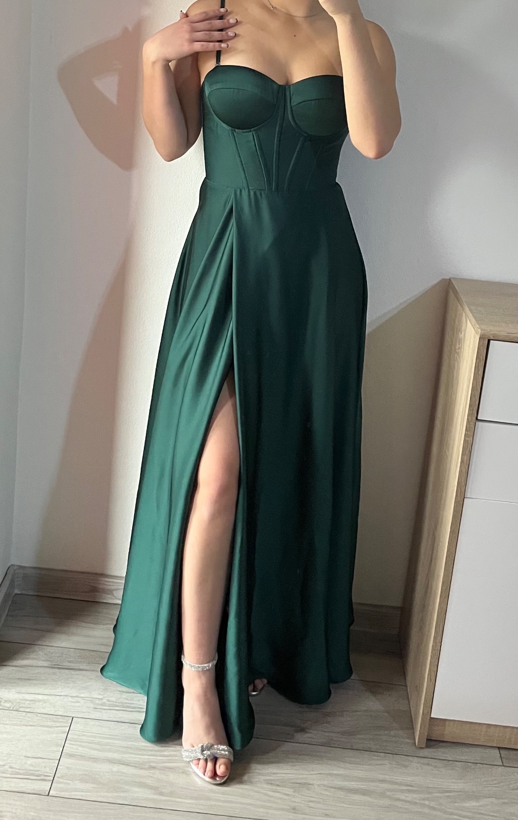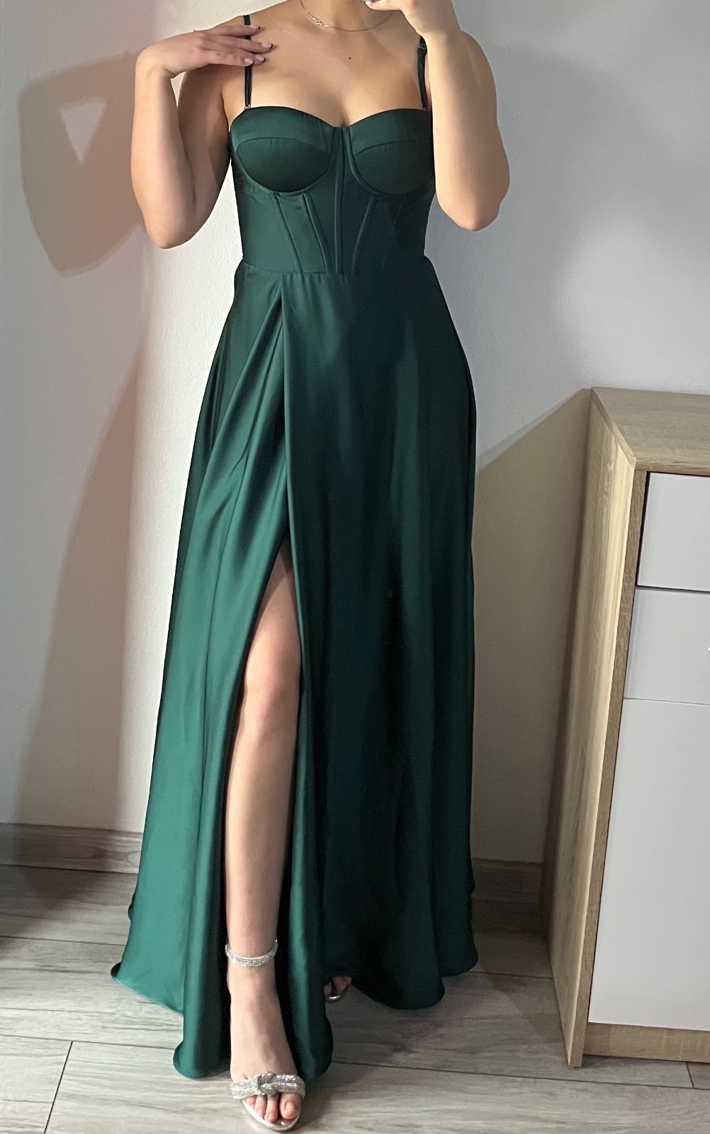 Tieto spoločenské šaty z vás vykúzlia šarmantnú dámu s veľkou dávkou elegancie a noblesy. Viazanie na chrbte pôsobí sexi, no zároveň rafinovane. Šaty sú na prsiach vystužené, na sukni sa zapínajú zipsom a ramienka sú nastaviteľné.Vzadu na chrbáte sa sťahujú čiže sadnú aj ako XS.