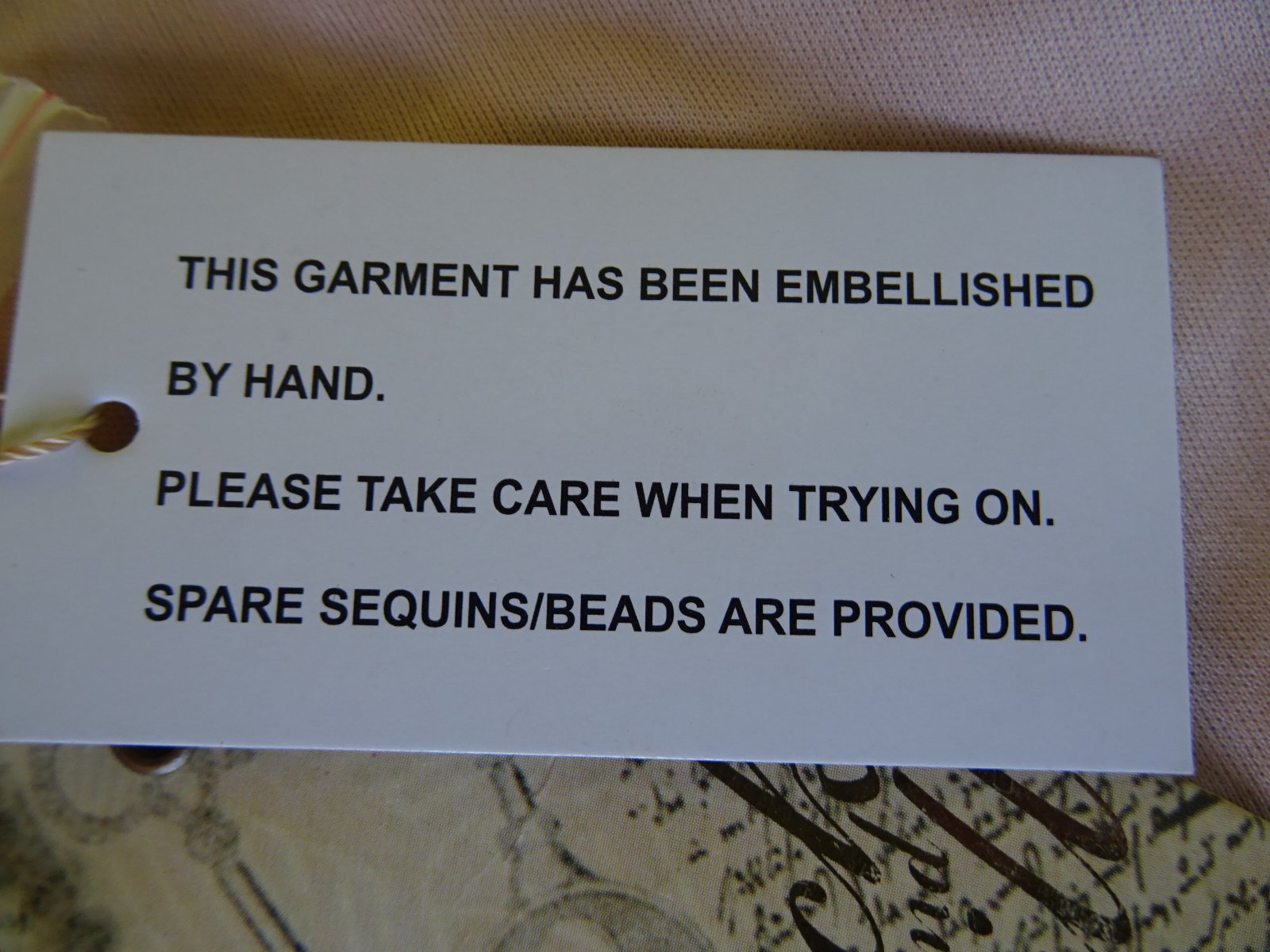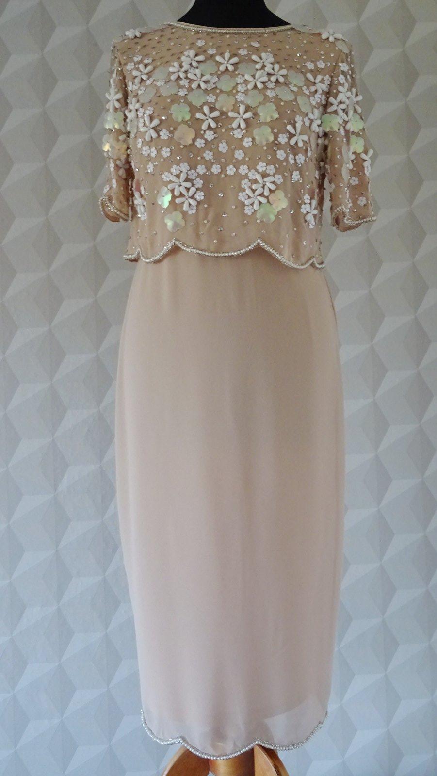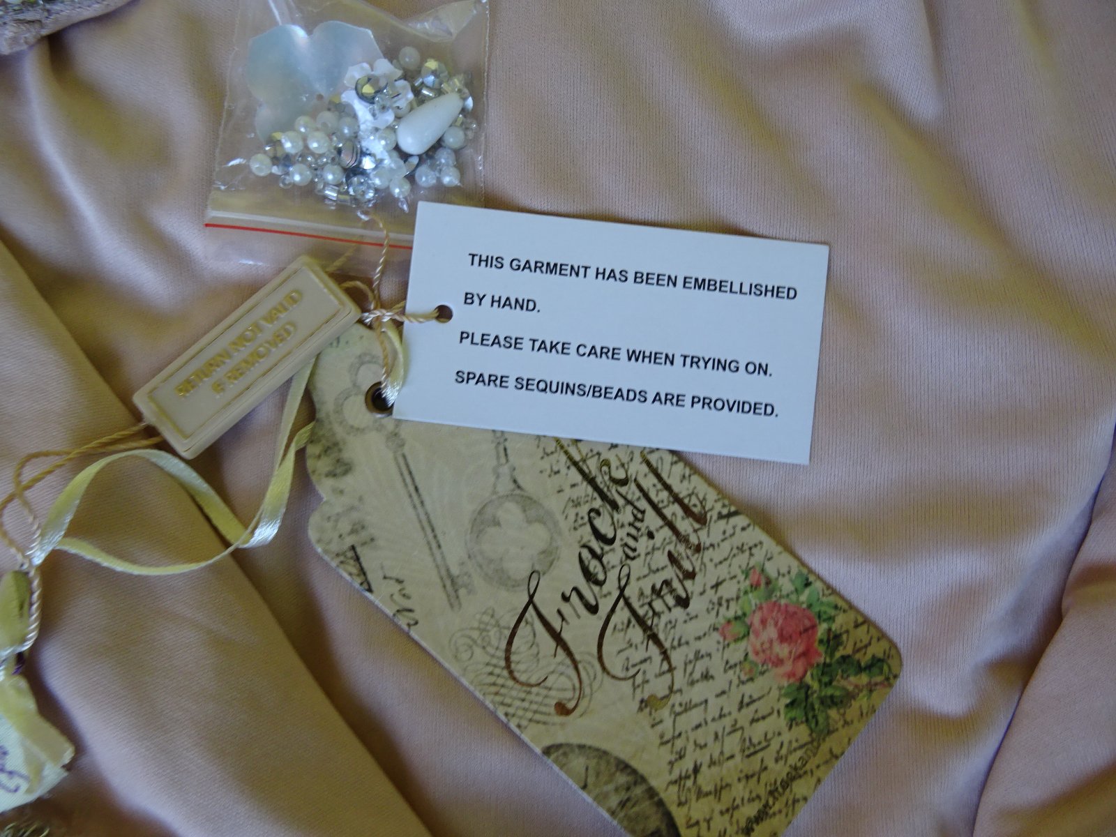 Tieto lichotivé šaty strednej dĺžky majú vrubkované lemy a živôtik zdobený bielym, krištáľovým a perleťovým zdobením. - vrstvené šaty ručne vyšívané flitrami a umelými perlami - okrúhly výstrih - Podšité - Úzky strih -