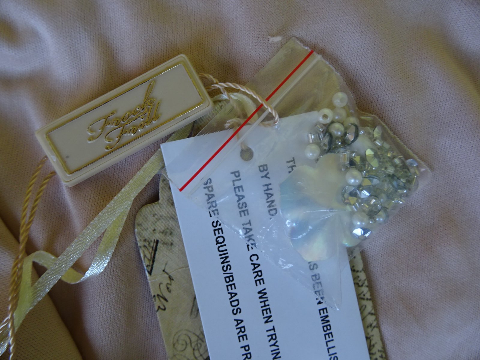 Prekrásne dámske šaty zn. Frock and Frill, kolekcia Genny. Veľkosť M, rozmery: dlžka šiat je 108cm, pod pazuchami 2x44cm, boky 2x48-50cm. Dĺžka je midi, zapínanie vzadu na zips.