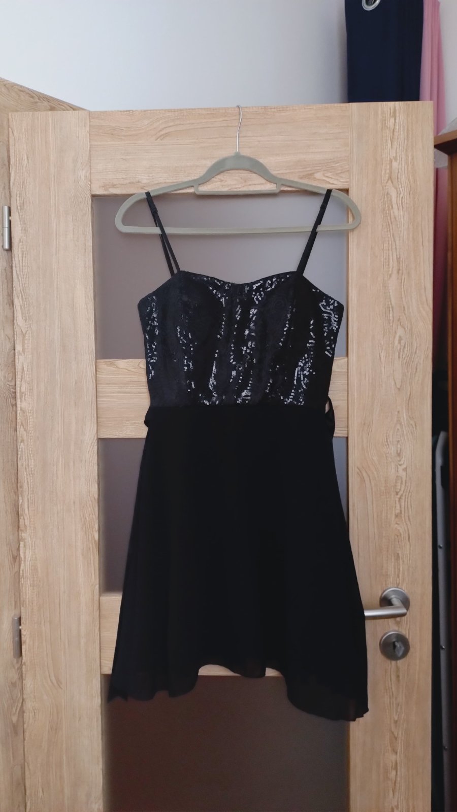 Predám tieto kokteilové šaty s flitrami na vrchnej časti, áčkový strih. Pekne sedia na postave, majú pevnejšiu spodničku, ktorá pekne drží tvar. Kupované v značkovom butiku, použité iba raz. Veľkosť sedí na S-M (ja nosím S, viď foto), pás 35 cm, ale nie je úplne pevný, povolí určite este 2 cm, dĺžka sa dá prispôsobiť, majú nastaviteľné ramienka, od pŕs až po spodok majú 75 cm. Pri kúpe viacerých vecičiek možná dohoda na cene.
