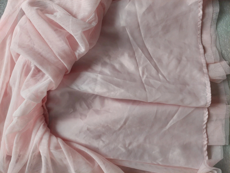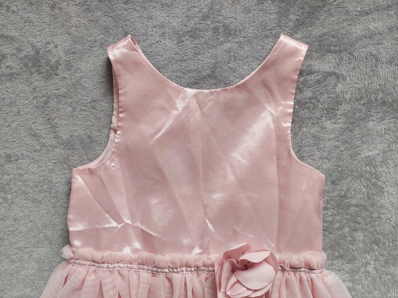 Stav: top stav, bez poškodení a známok nosenia, krásne ako nové. Vzadu zapínanie na gombíky, v páse guma. Suknička s pevnou podšívkou a na tom 2 vrstvy jemného padaného tylu. Krásne, staroružovej farby, vhodné na slávnostné nosenie aj na karneval ako šaty malej princezny.