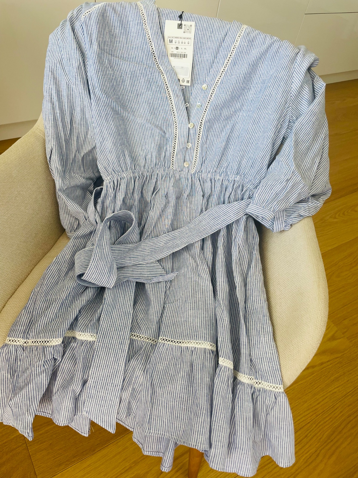 Kupene tu na MK ako nové,ale mne su krátke.No su kraaasne.Maju vrecka. Prsia 46cm,pas 39cm,dlzka 80cm