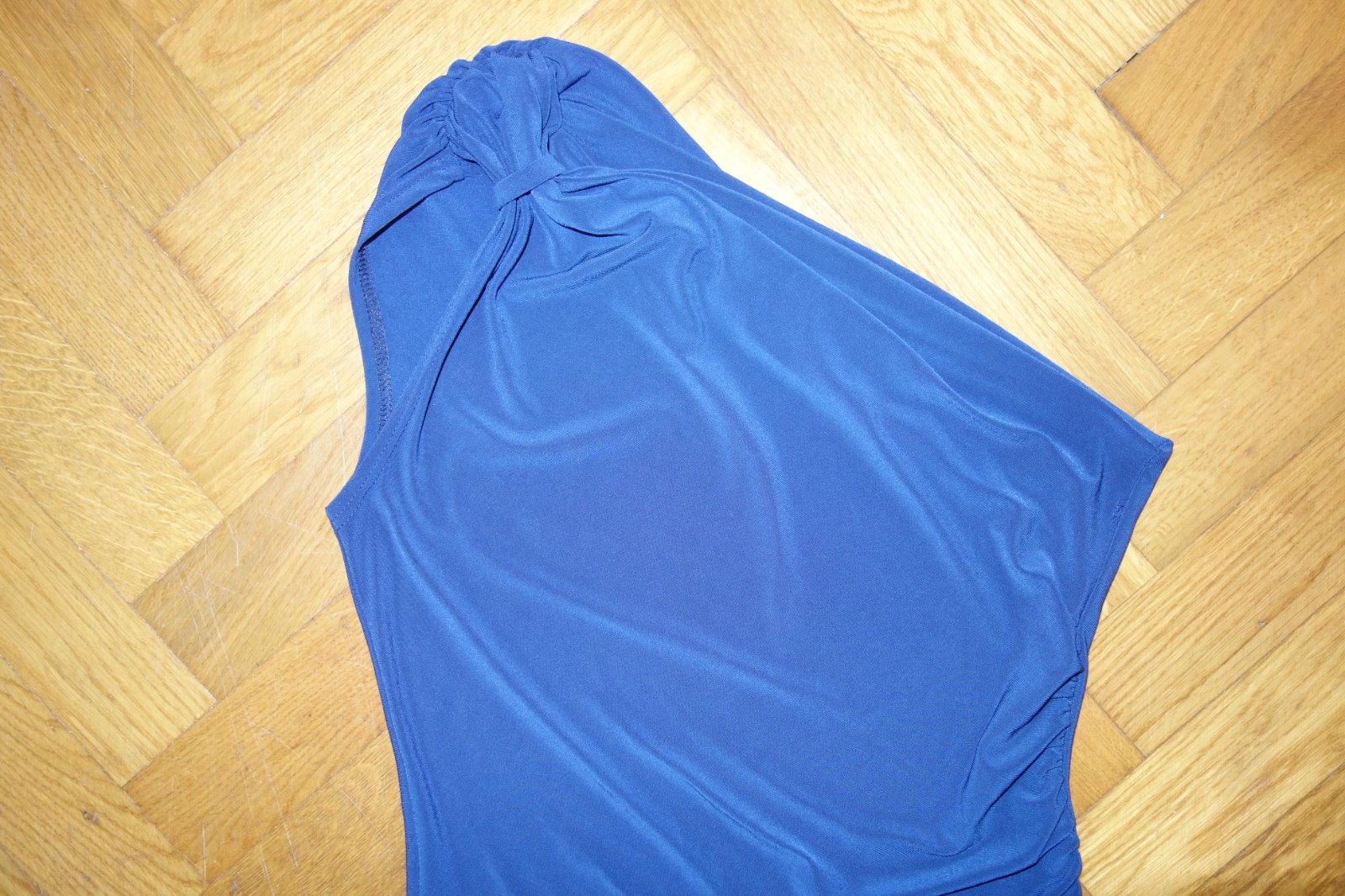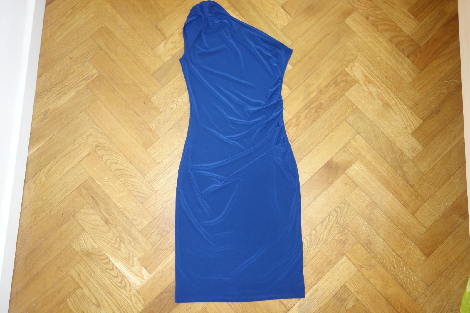 Výborný stav. Krásne, jednoduché šaty, na jedno rameno, elastické, okolo pása nazberkané, takže z nich netrčí brucho. Kľudne sa do nich oblečie aj 38, 40, keďže naozaj sú elastické.