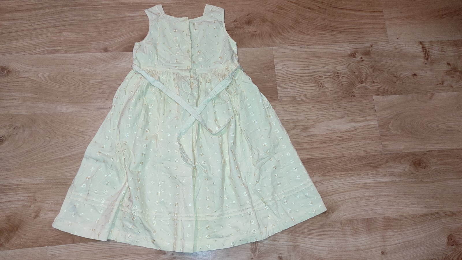 Ponúkam na predaj krásne šaty pre dievčatko. Bavlnené, oblečené veľmi pekne, vzadu sa viažu..dcéra ich mala len pár krát v škole. Hodia sa kľudne aj na príležitosť. Bez akýchkoľvek poškodení, príjemná žltá farba, sytejsia ako na foto. Bavlnene. Kupované v IE. Cena 5 eur.