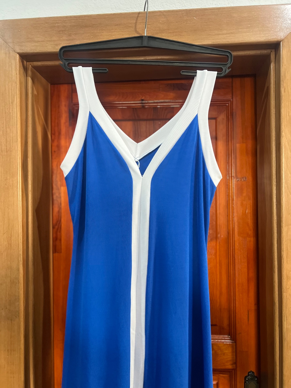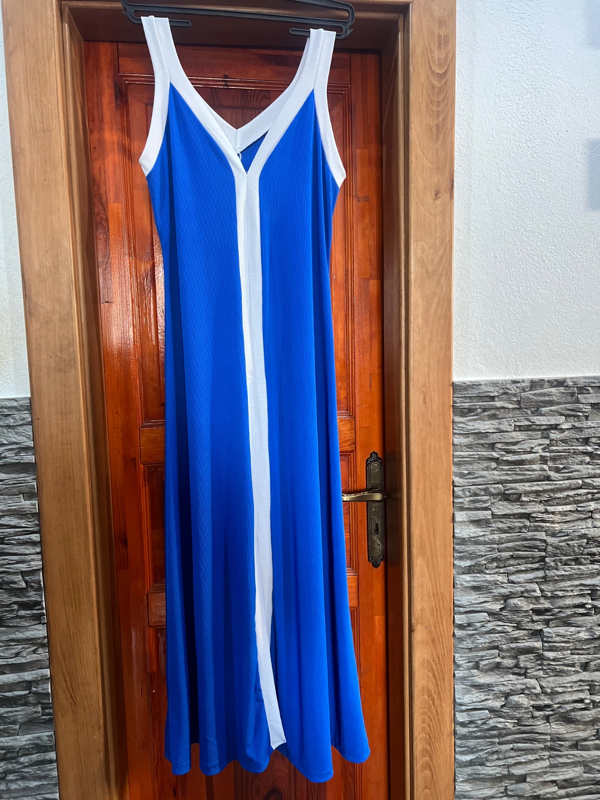 Letné šaty cez prsia, obvod cez prsia 96+3/4 cm, vzadu gumičkový diel - natiahne sa. Sú strihané pod prsiami a voľný strih, podšité. Materiál 70% bavlna, 30% hodváb.