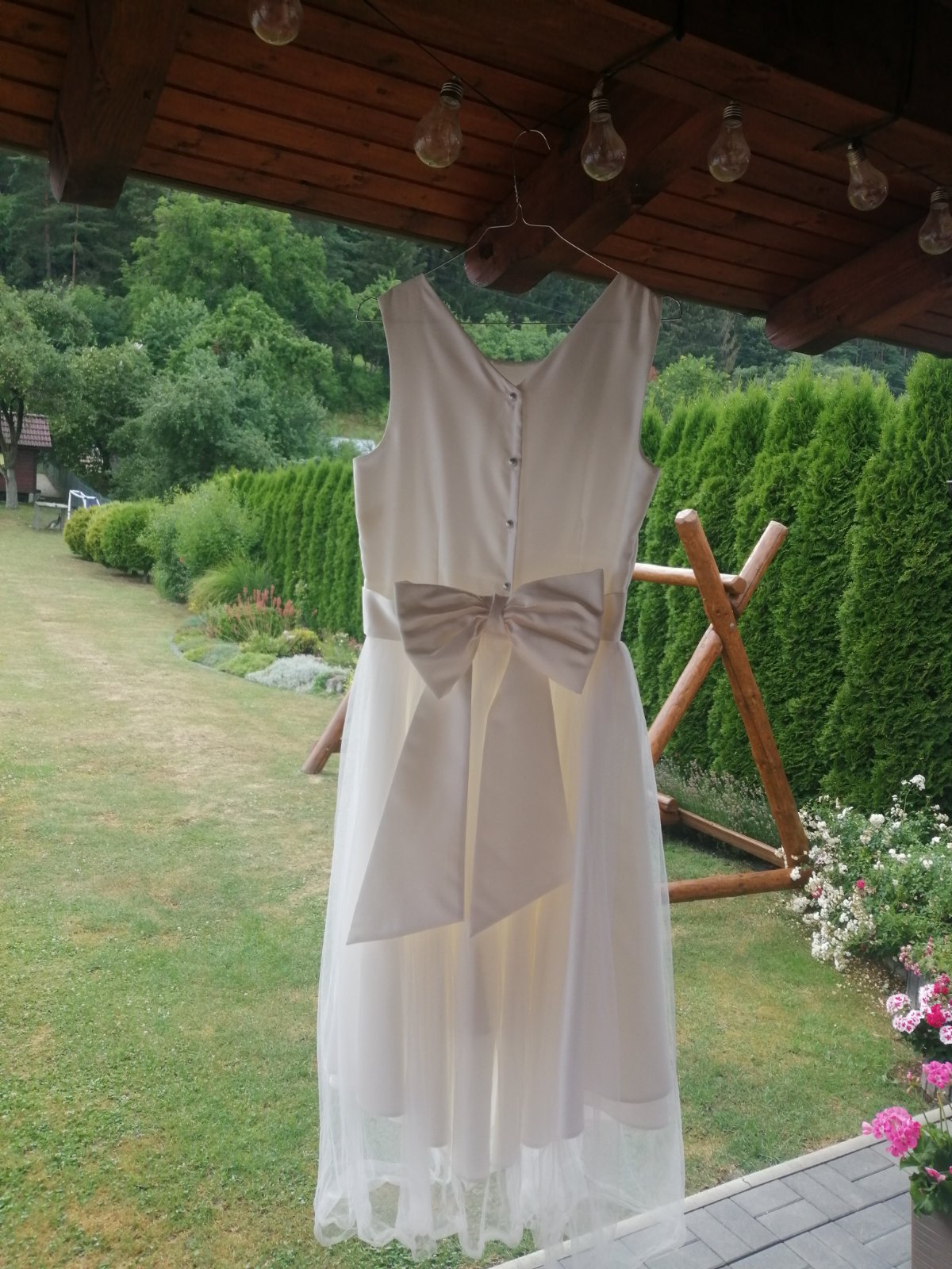 Predám krásne šaty pre družičky značky Next, veľkosť 168 cm, v krémovej farbe. Šaty boli oblečené 1krát, sú vyčistené a nemajú žiadne známky poškodenia.