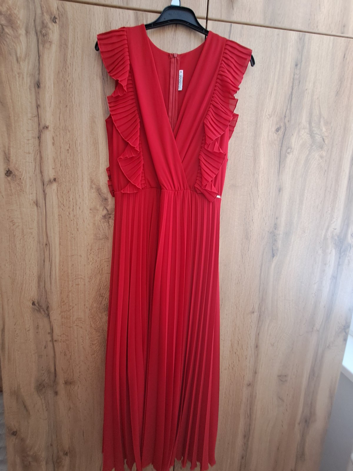 Krásne červené saty,oblečené raz na svadbe,veľkosť vraj uni no skôr xs/s menšie M možno.....dĺžka tak cca 125/127cm bez ramienok iba saty