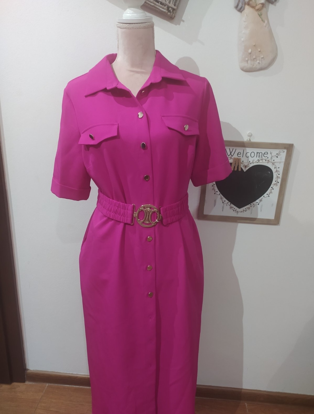 Krásne košeľové šaty v top stave,zapínanie na zlaté gombíky, doplnené opaskom so zlatou sponou,vo švíkoch vrecká