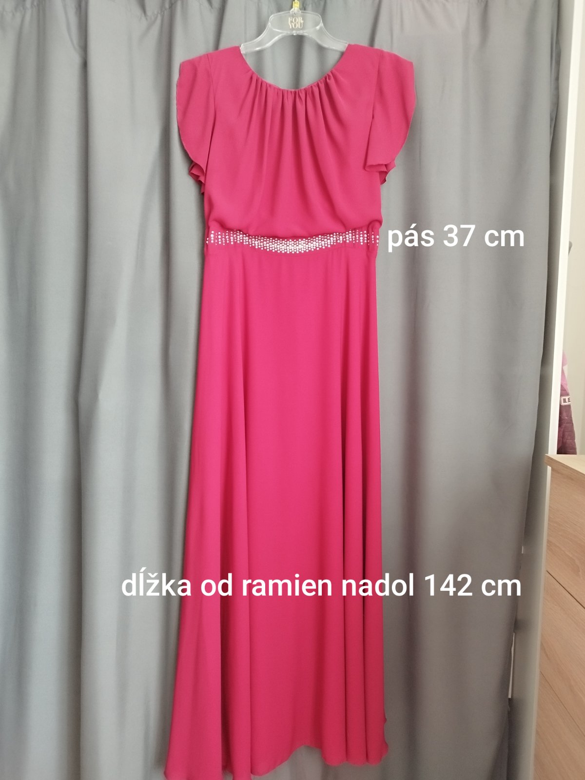 Krásne cyklámenové šaty s vlečkou + motýlik