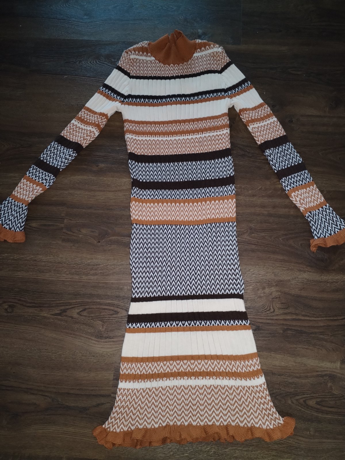 Nenosené,sú na vyššiu užšiu postavu,hoci šaty sú elastické, prsia 66 CM vklude ale pustia ešte. Keďže som pribrala posúvam. Cena 5 eur plus poštovné