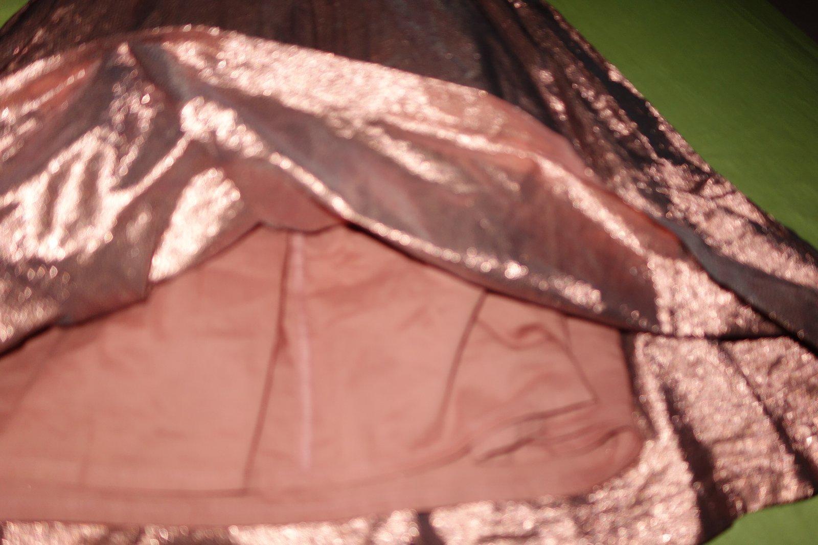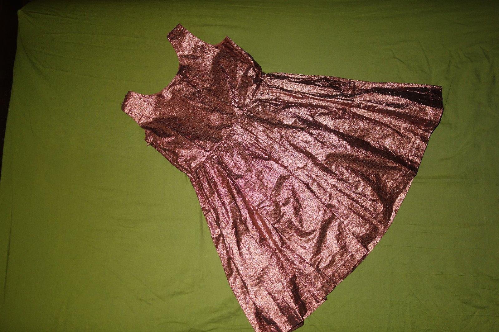 Krasne satocky s maslou vo velmi dobrom stave. Ramienka boli skracovane a je to tak dost skaredo spravene (vid foto), bude treba presit. Su takej medenej farby. Stitok s velkostou je odstrihnuty, ale podla mna su to take 146-ky.