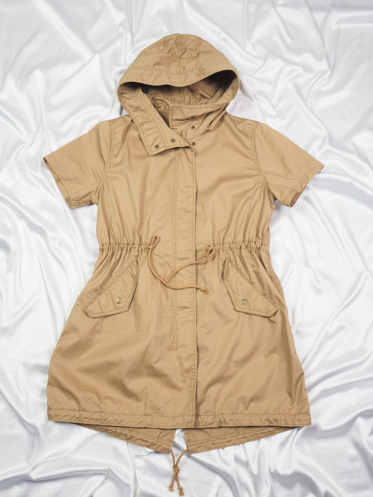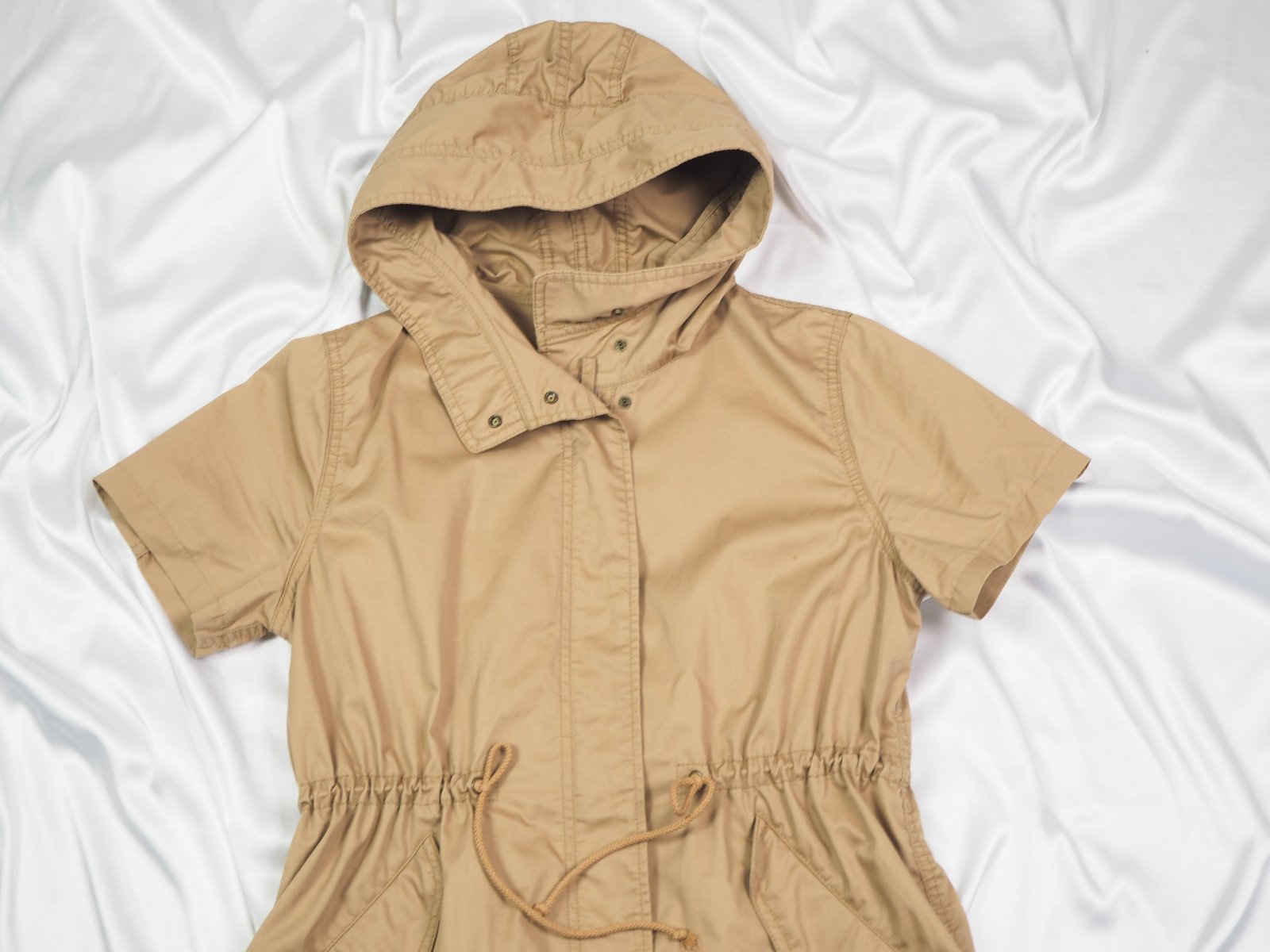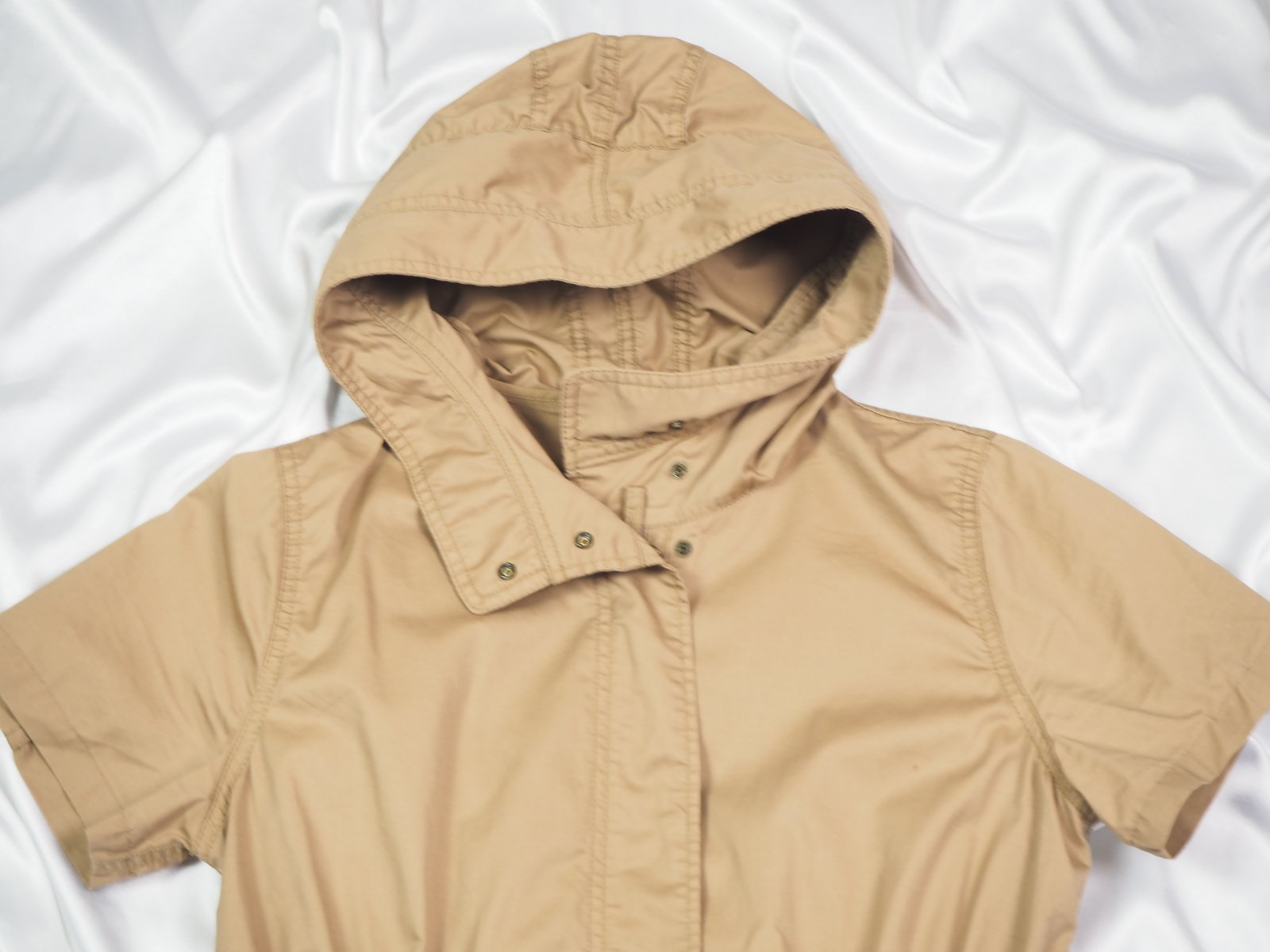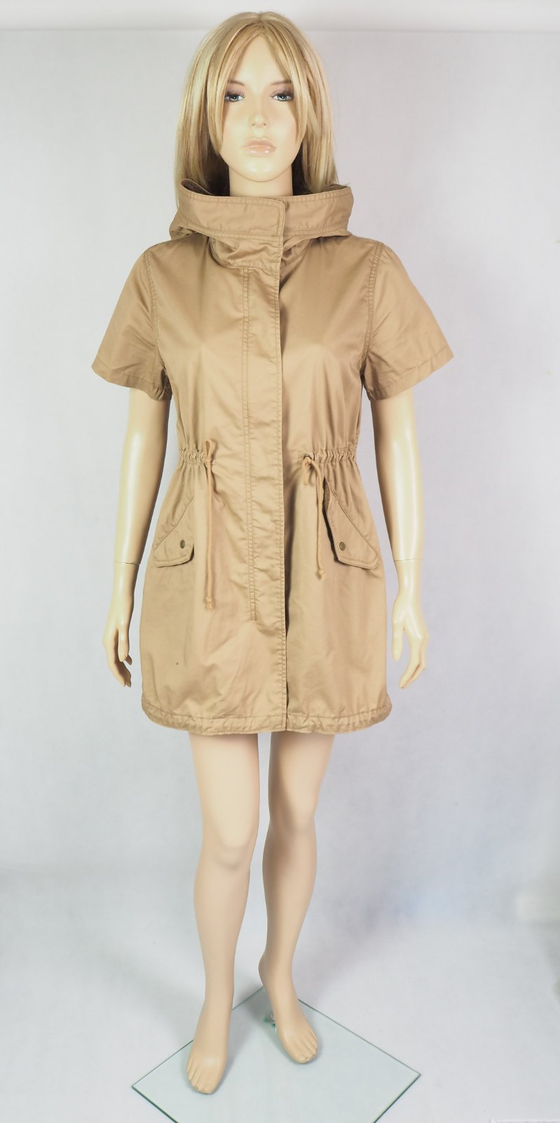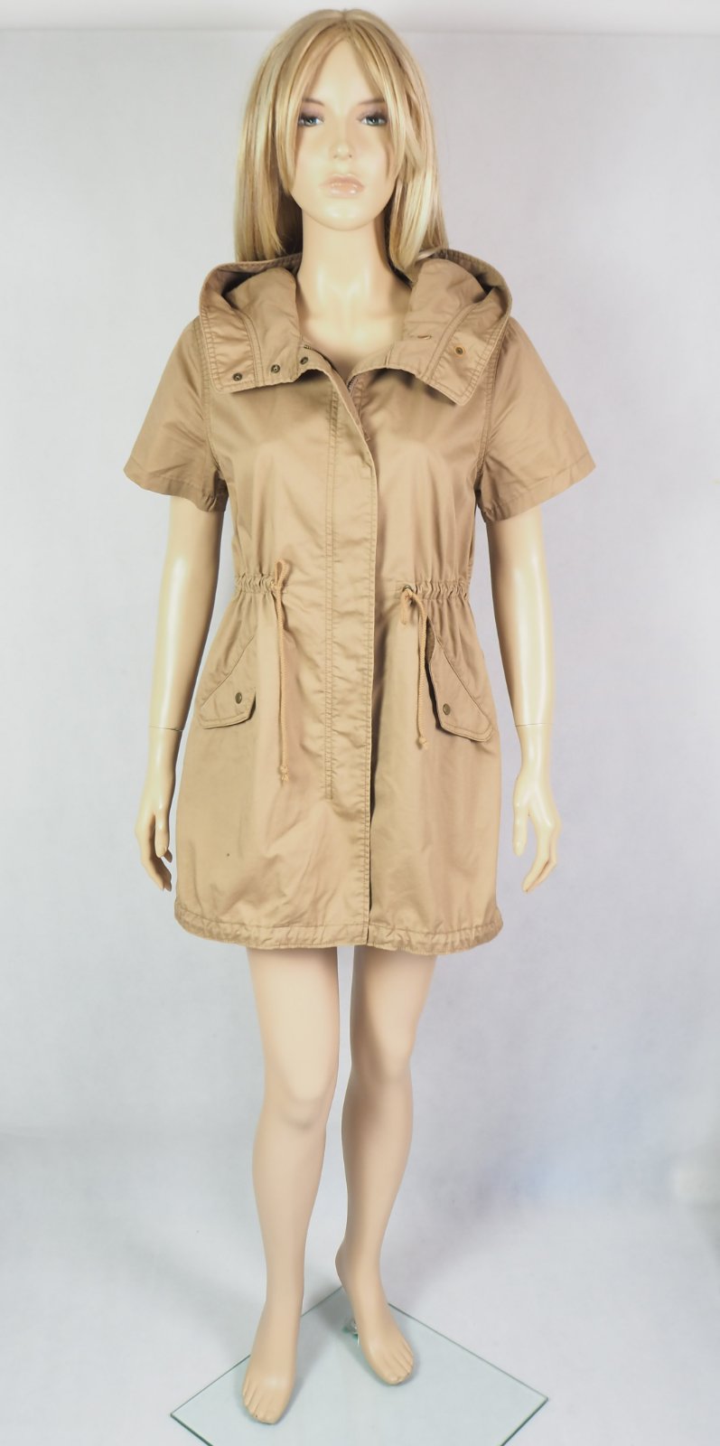 Kvalitné letné šaty/bunda s kapucňou, zapínanie na zips, a légu s cvočkami, bez podšívky, materiál 75% bavlna, 25% polyester, super stav.