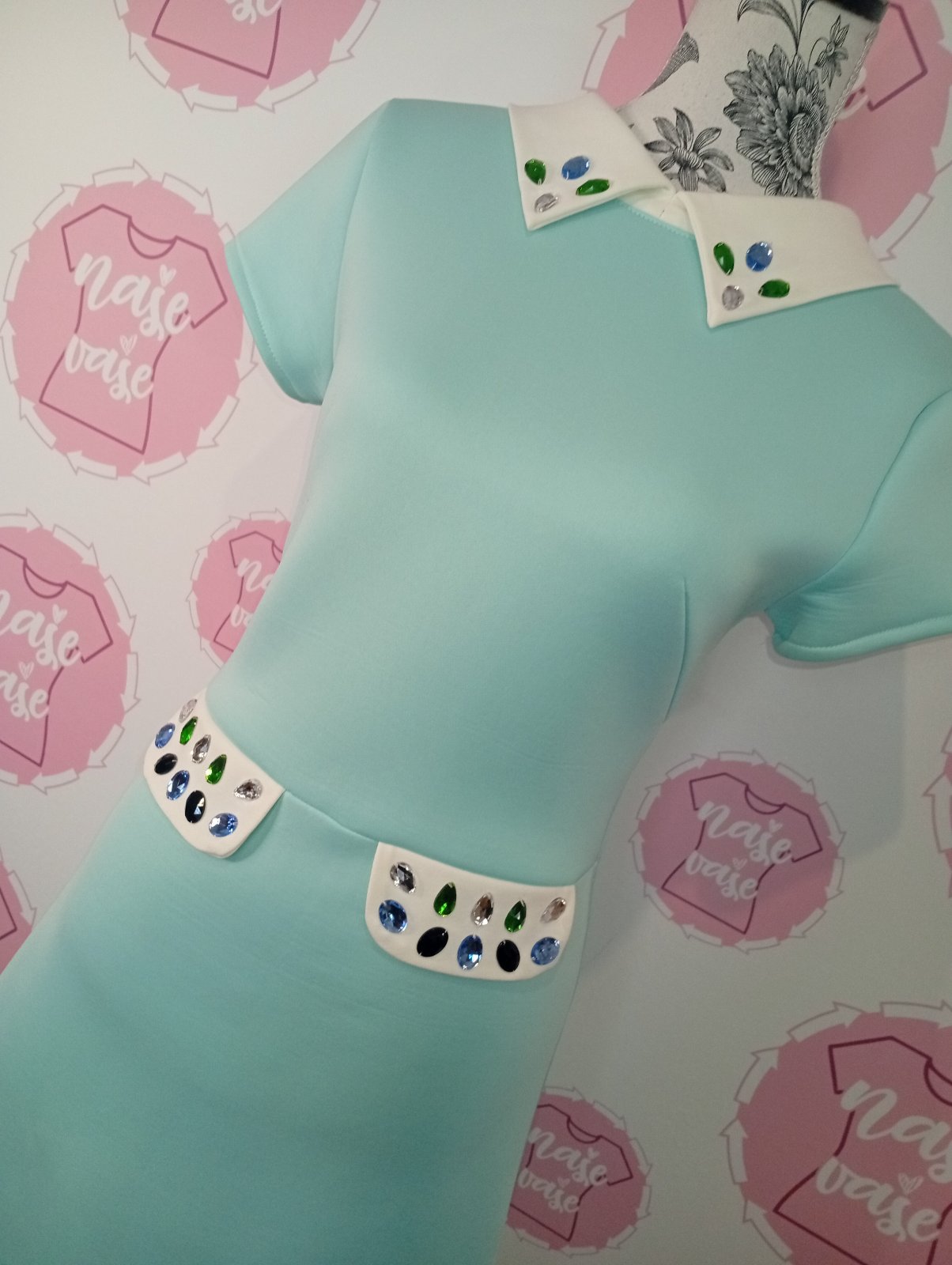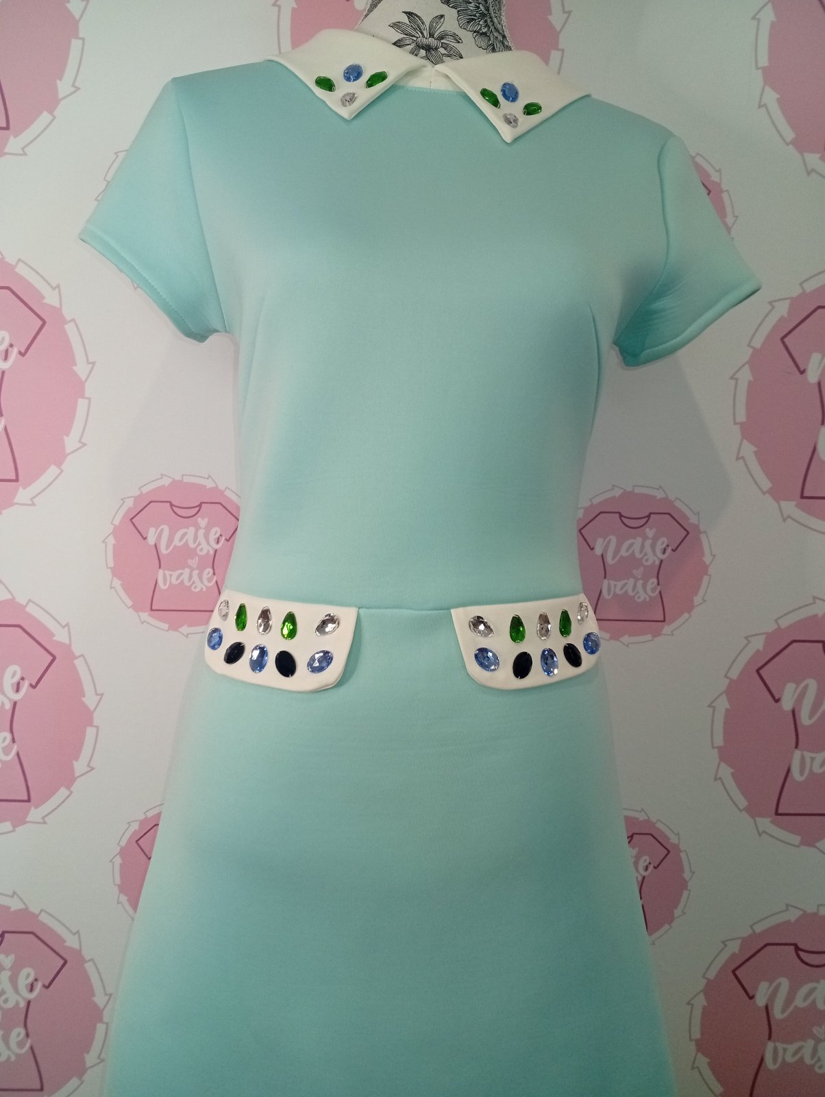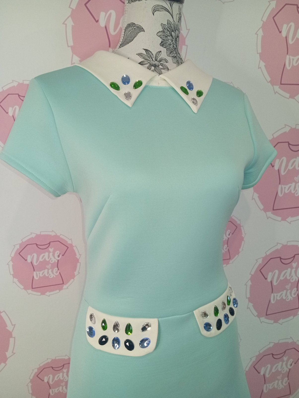 Mentolové šaty s kamienkami
