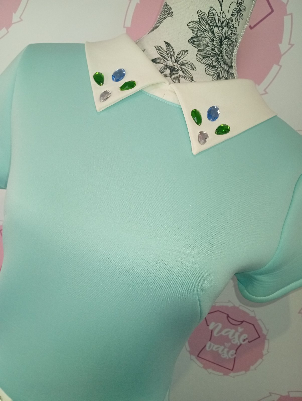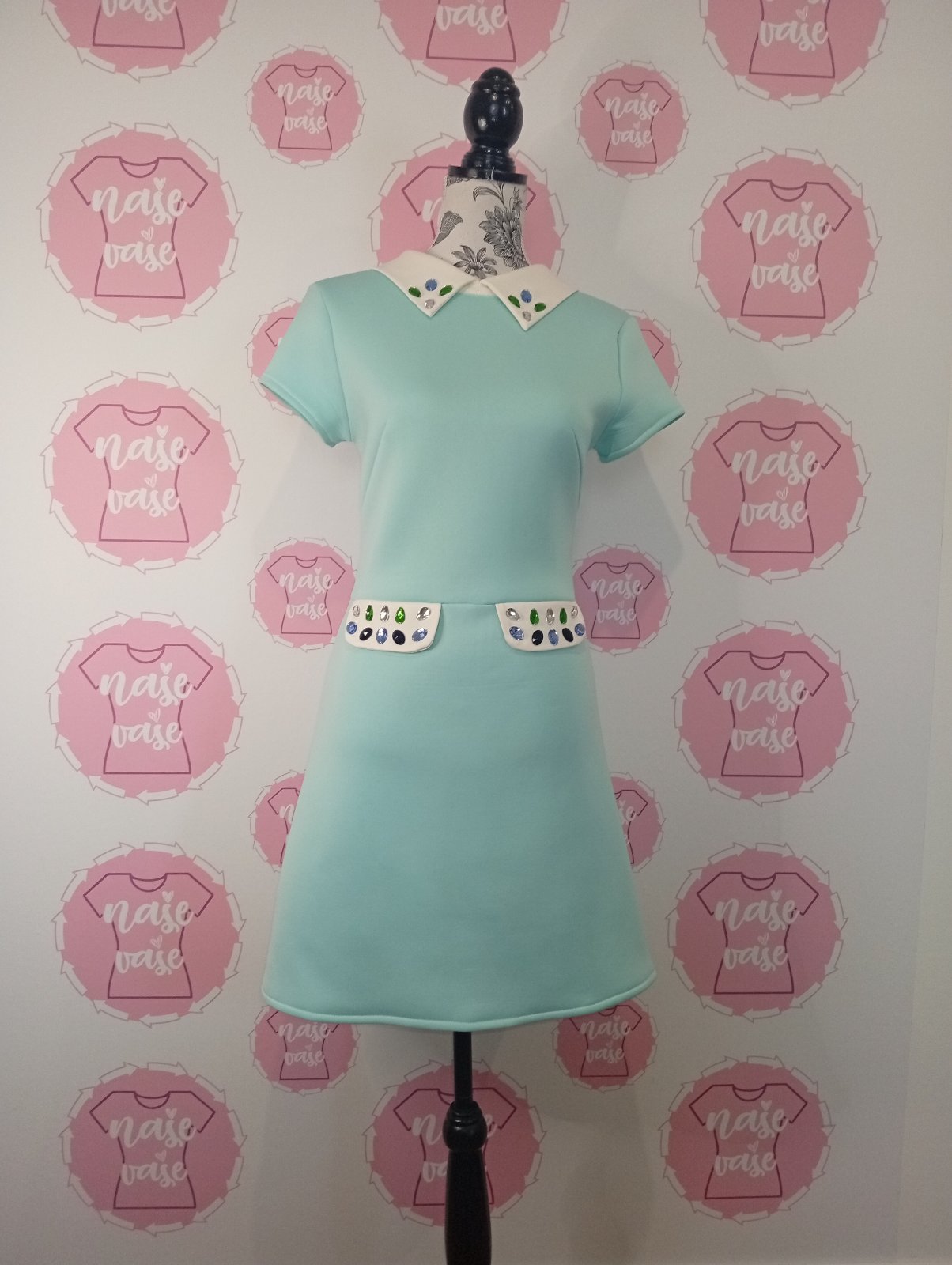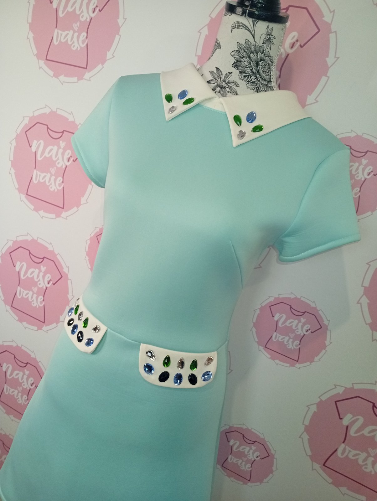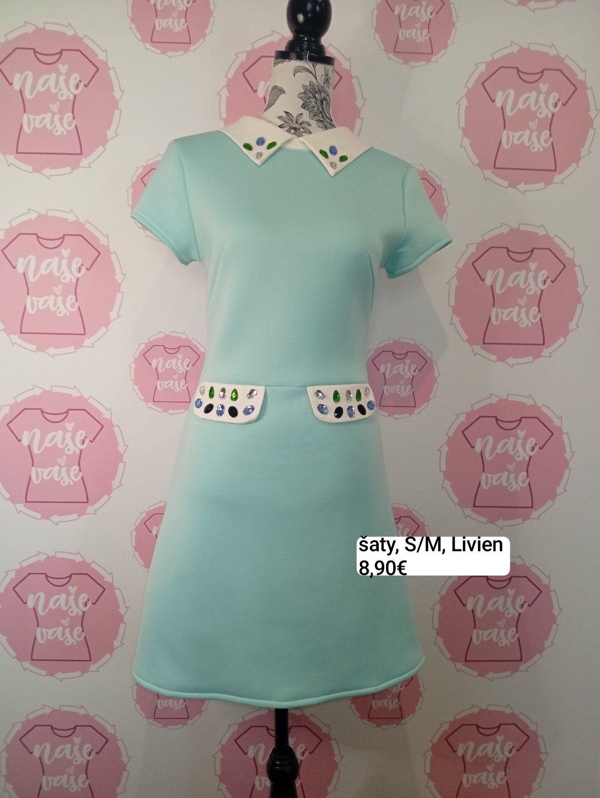 Mentolové šaty s kamienkami