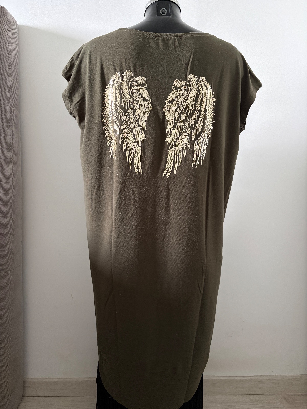 Na predaj krásne šaty olivového farbe. Je k nim aj opasok. Značka mohito. Celková dĺžka je 124 CM. Pod pazuchami je 38 CM x 2.